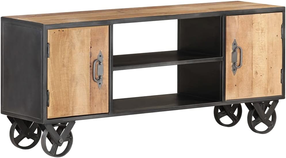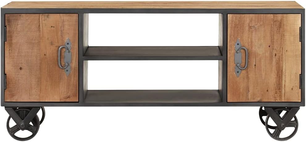 TV Stand 46.9"x11.8"x16.1" Solid Wood Acacia,Rustic Acacia Wood TV Cabinet with Ample Storage for Bedroom and Living Room Furniture for TV & Media, Entertainment Centers