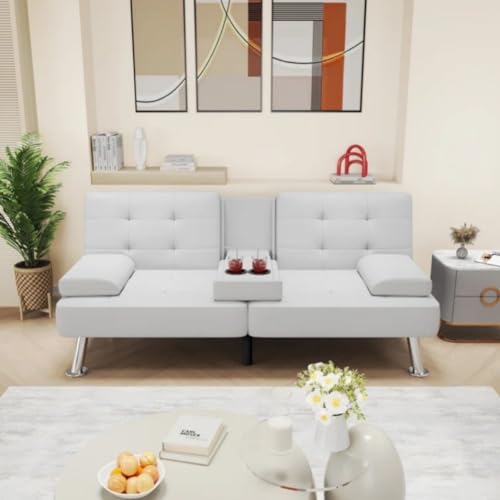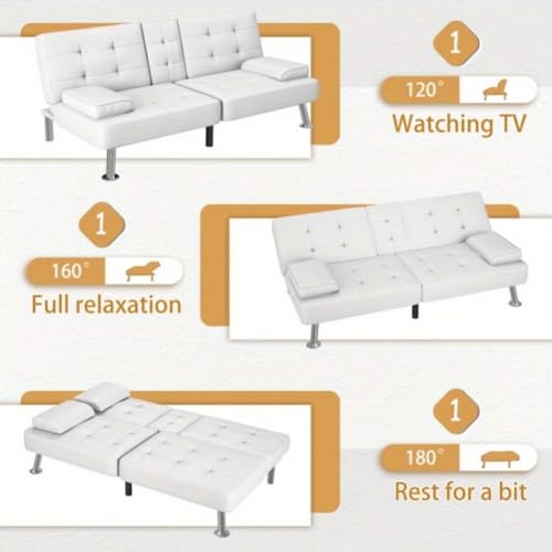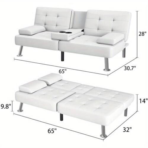 66 Wide Durable Faux Leather Reclining Sofa, Modern Folding Futon Set Faux Leather Convertible Recliner Lounge, with Removable Armrests, Cup Holders (Black)