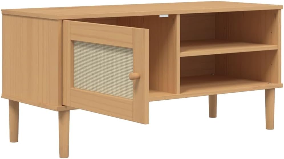 TV Stand, Small Kitchen Table Dresser Desk Short Shelf Tv Unit Suitable for Entryway Bedroom Office Living Room SENJA Rattan Look Brown 41.7"x15.7"x19.3" Solid Wood Pine
