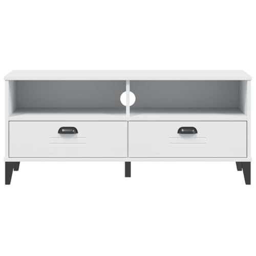 vidaXL VIGO White Solid Wood Pine TV Stand Entertainment Center with Drawers - Media Cabinet for Living Room, Bedroom Storage with Metal Accents