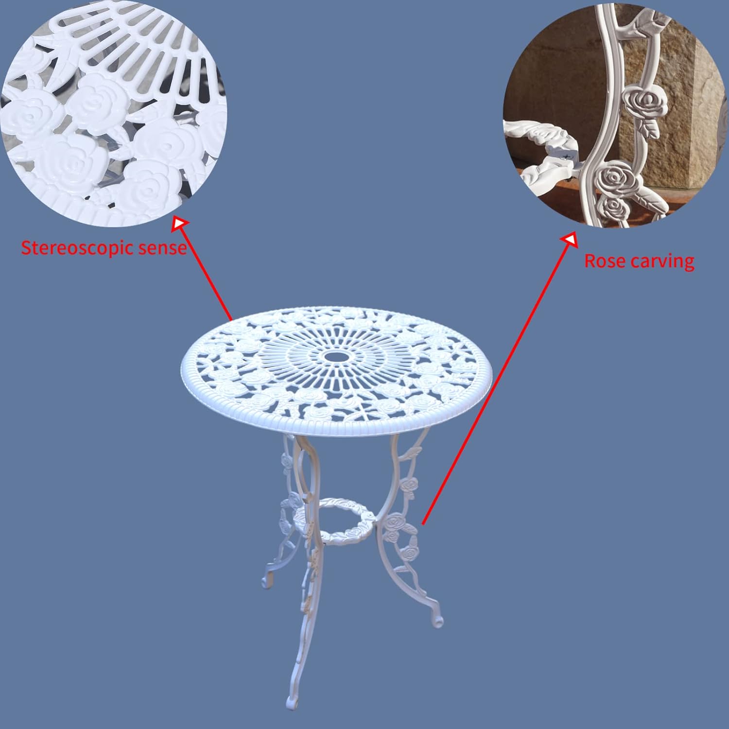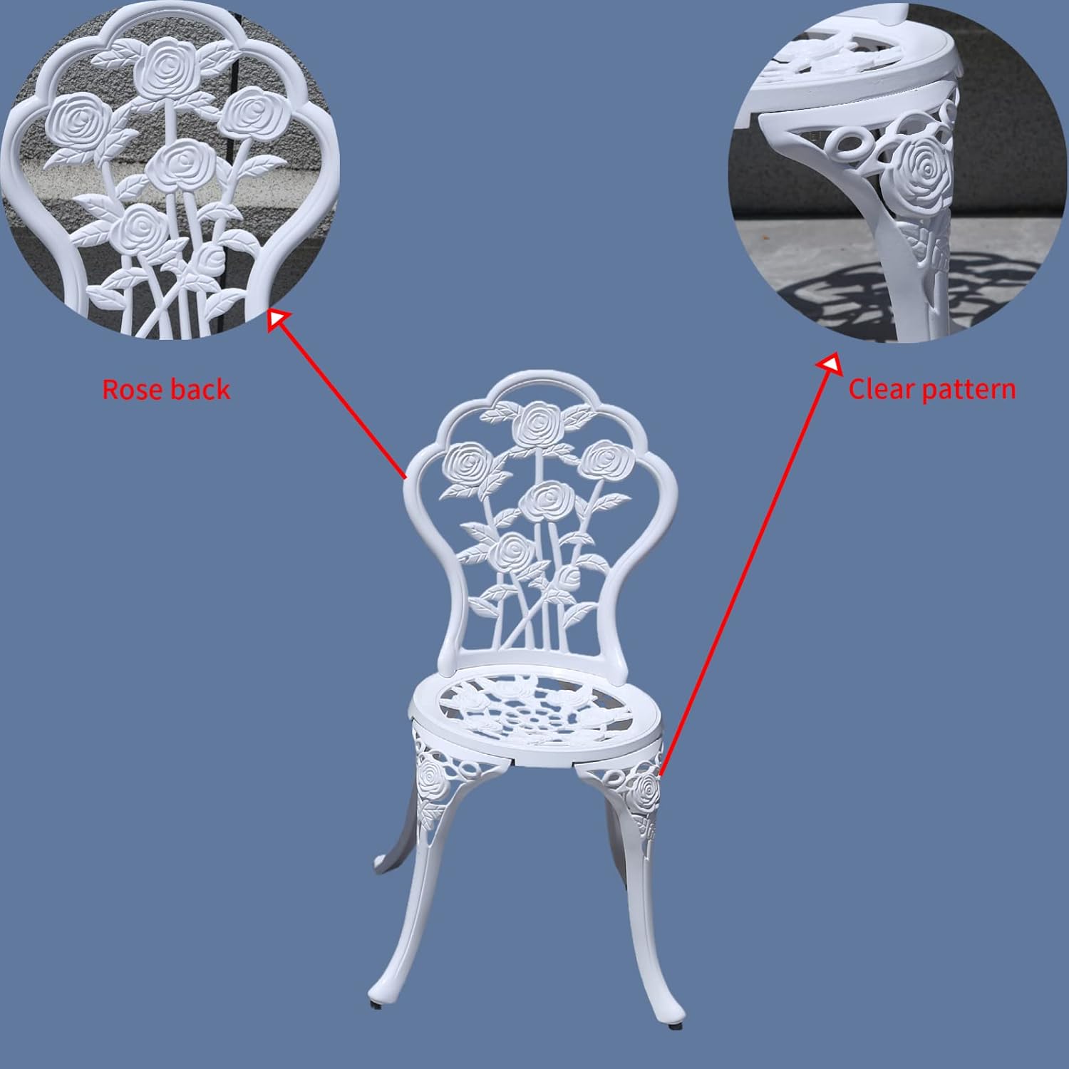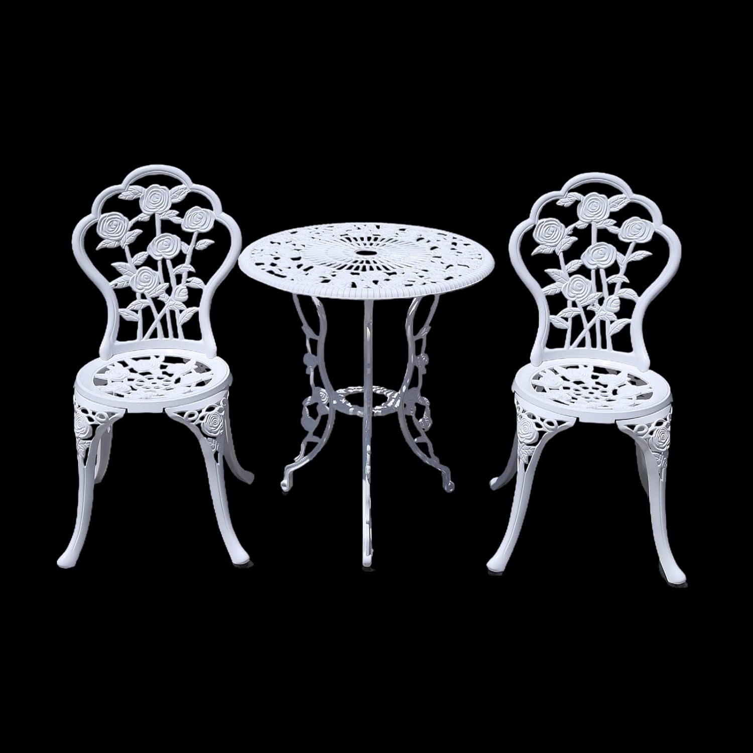 Outdoor Furniture Bistro Set with Rose Pattern 1 Table 2 Chairs for Garden Patio Porch (White)