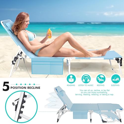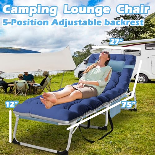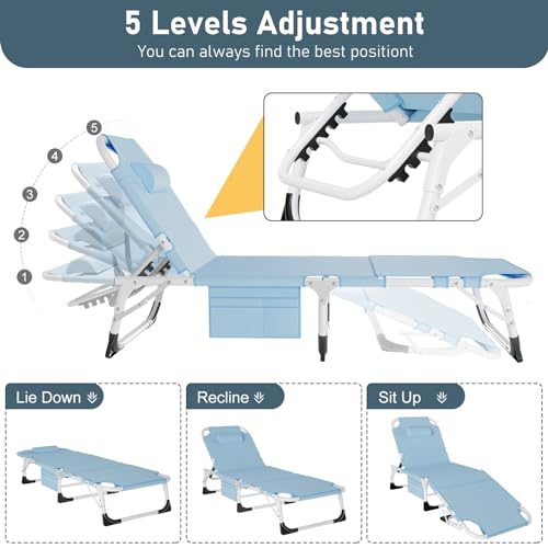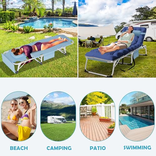 ABORON Heavy Duty Patio Chaise Lounge, 500LB Bearing 3IN1 Adjustable Lounge Chair 1200D Oxford Adults Sleeping Camp Chair, with Mattress (tanning chaise lounge, Khaki)