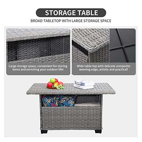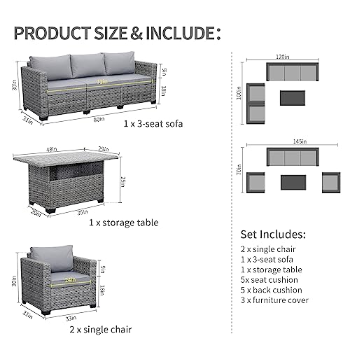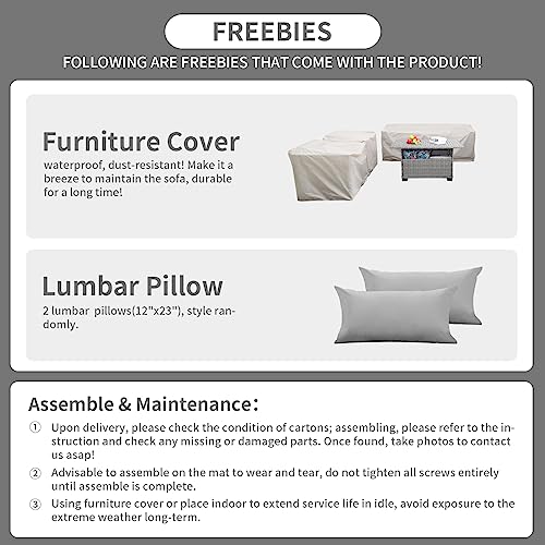 Rattaner Patio Furniture Set 4 Pieces Outdoor Furniture Sets Patio Couch Outdoor Chairs Propane Fire pit with Anti-Slip Cushions and Waterproof Covers, Khaki