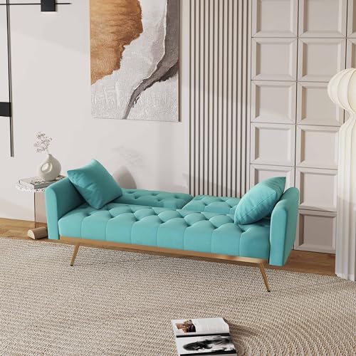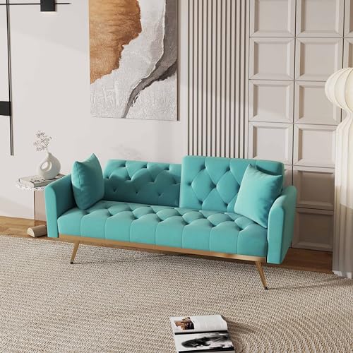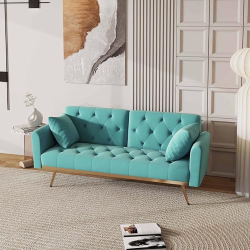 Convertible Sofa Bed Comfy,Futon Couch Sofa Bed with Adjustable Split Backrest,2 Pillows and Arms for Living Room and Office (Baby Blue)