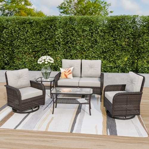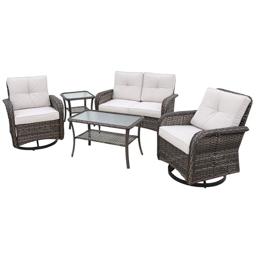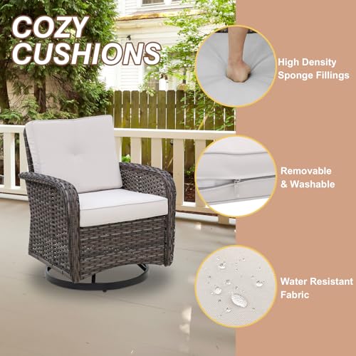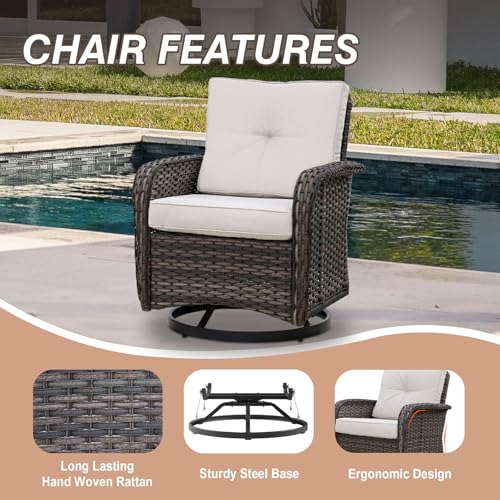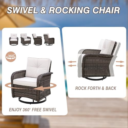COOS BAY 3-Piece Outdoor Wicker Swivel Rocker Chair Bistro Set - 2 PE Rattan Swivel Rocking Chairs with Side Table for Patio, Lawn, Deck, Backyard