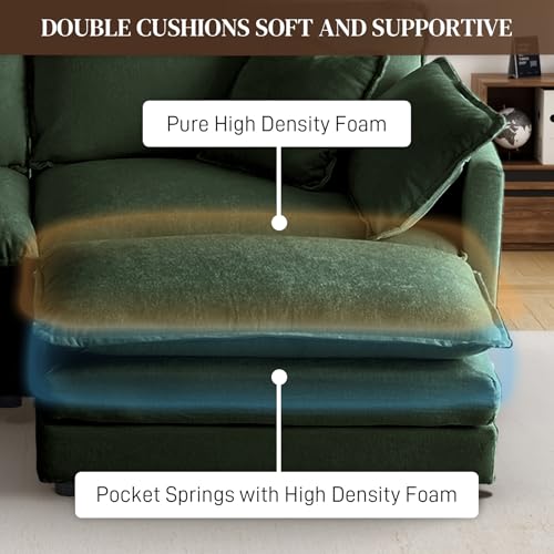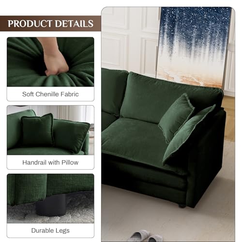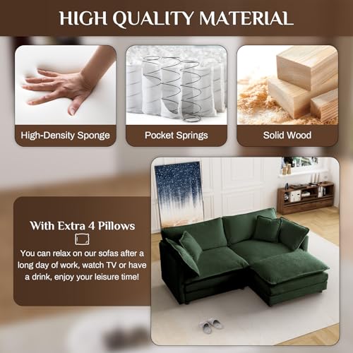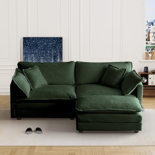 Modular Sectional Sofa, 76.7" Comfy Chenille Deep Seat 2 Seater Cloud Couch, L Shaped Loveseat Sofa with Convertible Ottoman, Modern Love Seat Sofa Set for Living Room Apartment Office, White
