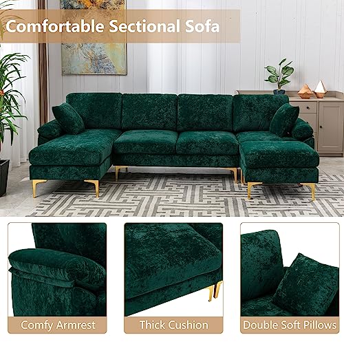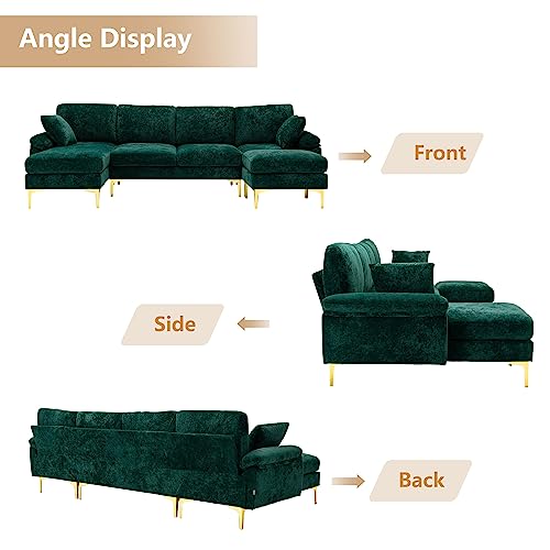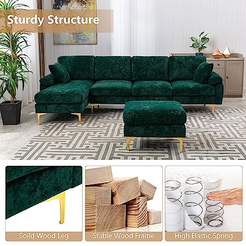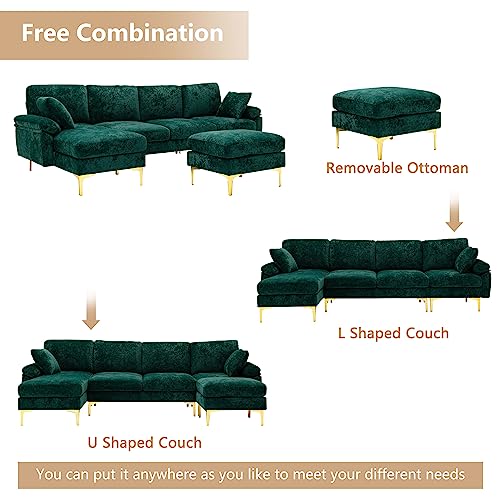 Sectional Sofa, Convertible U Shaped Couch Bed with Reversible Chaise & Movable Ottoman, Velvet L Shaped Cloud Couches for Living Room, White