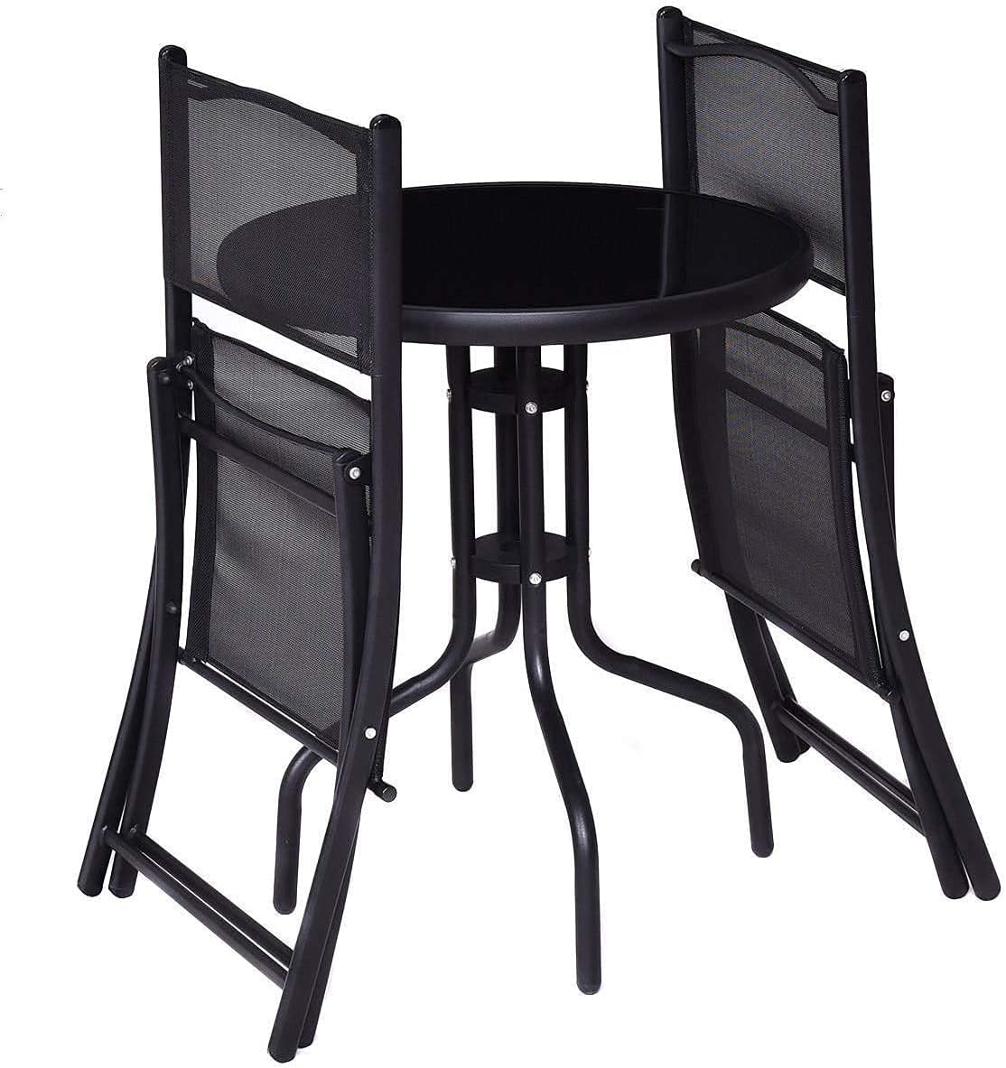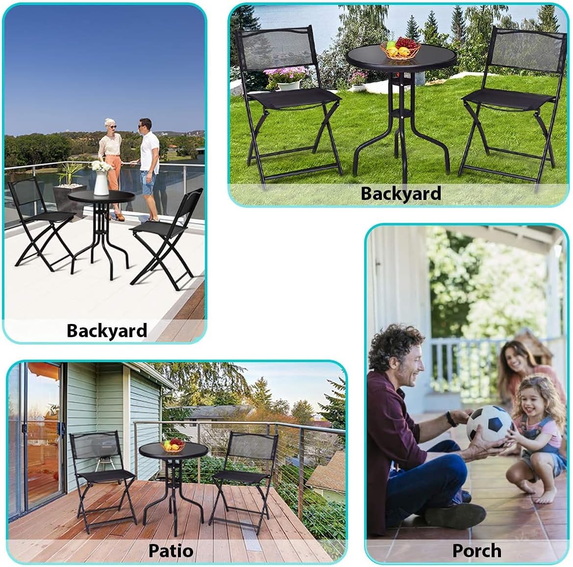 Weather-Resistant Indoor/Outdoor Patio Furniture Table and Chairs Conversation 3 PCS Bistro Set, Black