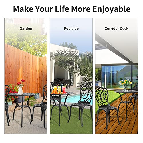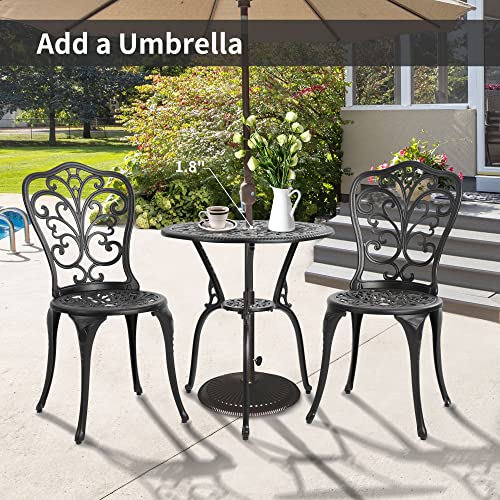 Patio Bistro Set with Umbrella Hole, 3 Piece Cast Aluminum Bistro Table and Chairs Set, Patio Table and Chairs, Bistro Set for Patio Backyard, Garden, Patio Balcony, Black