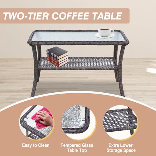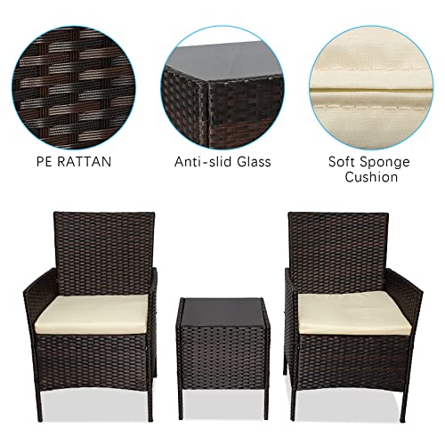 3-Piece Patio Outdoor Rattan Furniture Chairs,Conversion Sets Modern Wicker Clearance Garden Yard Apartment with Coffee Stronge Table & Warm Cushion,Brown (Brown&Beige) (zjj)