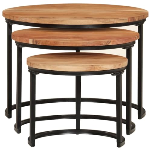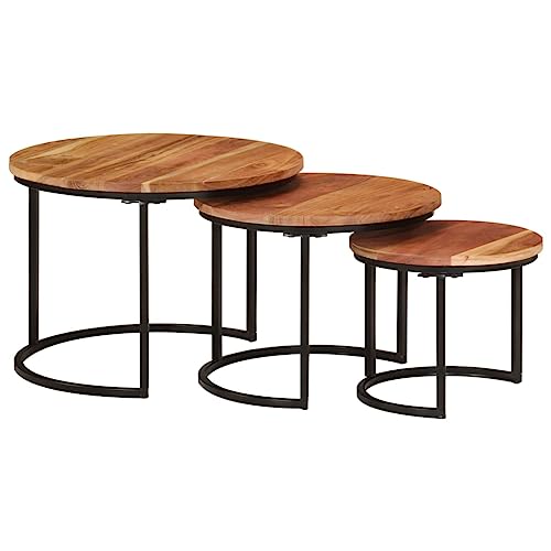 Nesting Tables 3 pcs Solid Wood Acacia,Nesting Coffee Table Set of 3, Acacia Wood Round Tables with Black Frame, for Living Room, Bedroom, or Office Accent Coffee Tables for Home & Kitchen