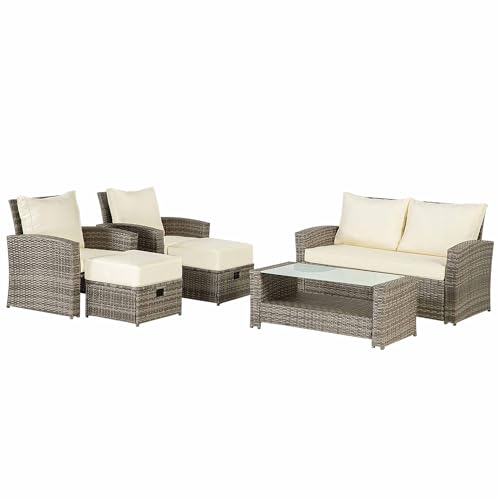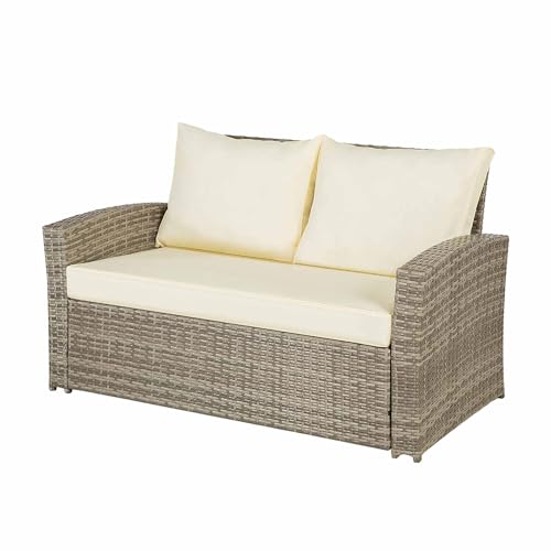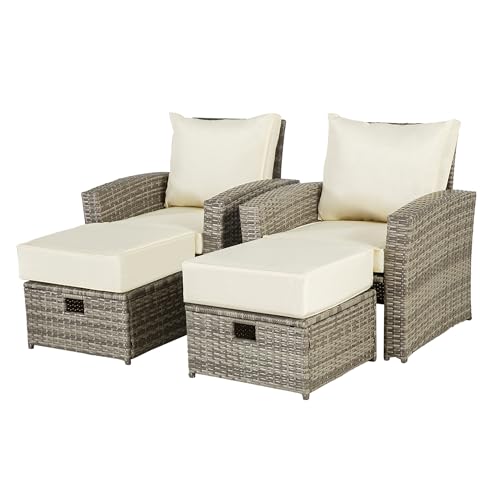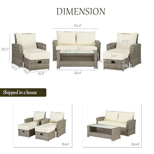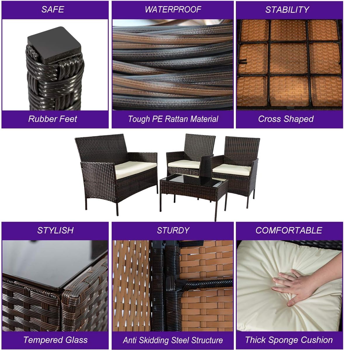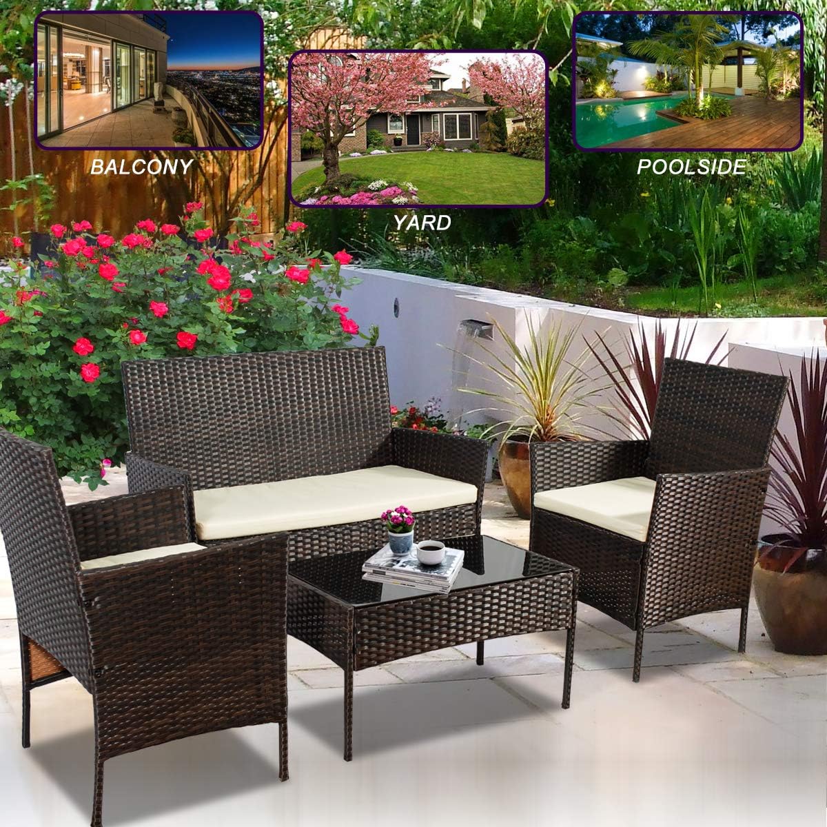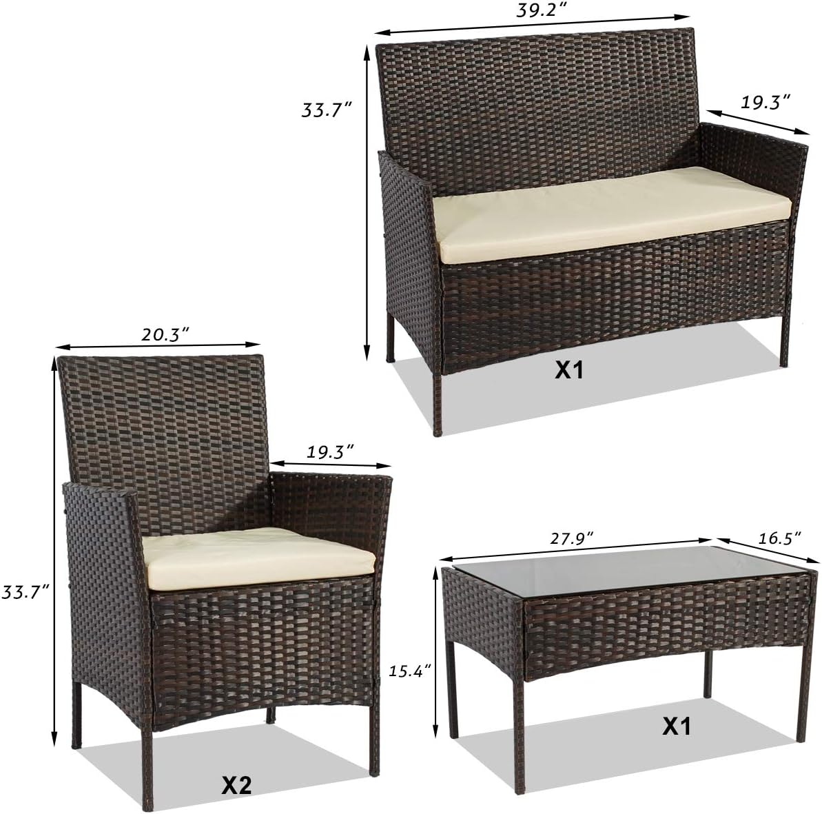 Patio Furniture, Outdoor Furniture,4 Piece Patio Furniture Set 4 Piece Outdoor Wicker Sofas Rattan Chair Wicker with Glass Table with Cushioned Seating,Outdoor Patio Furniture(Brown)