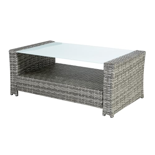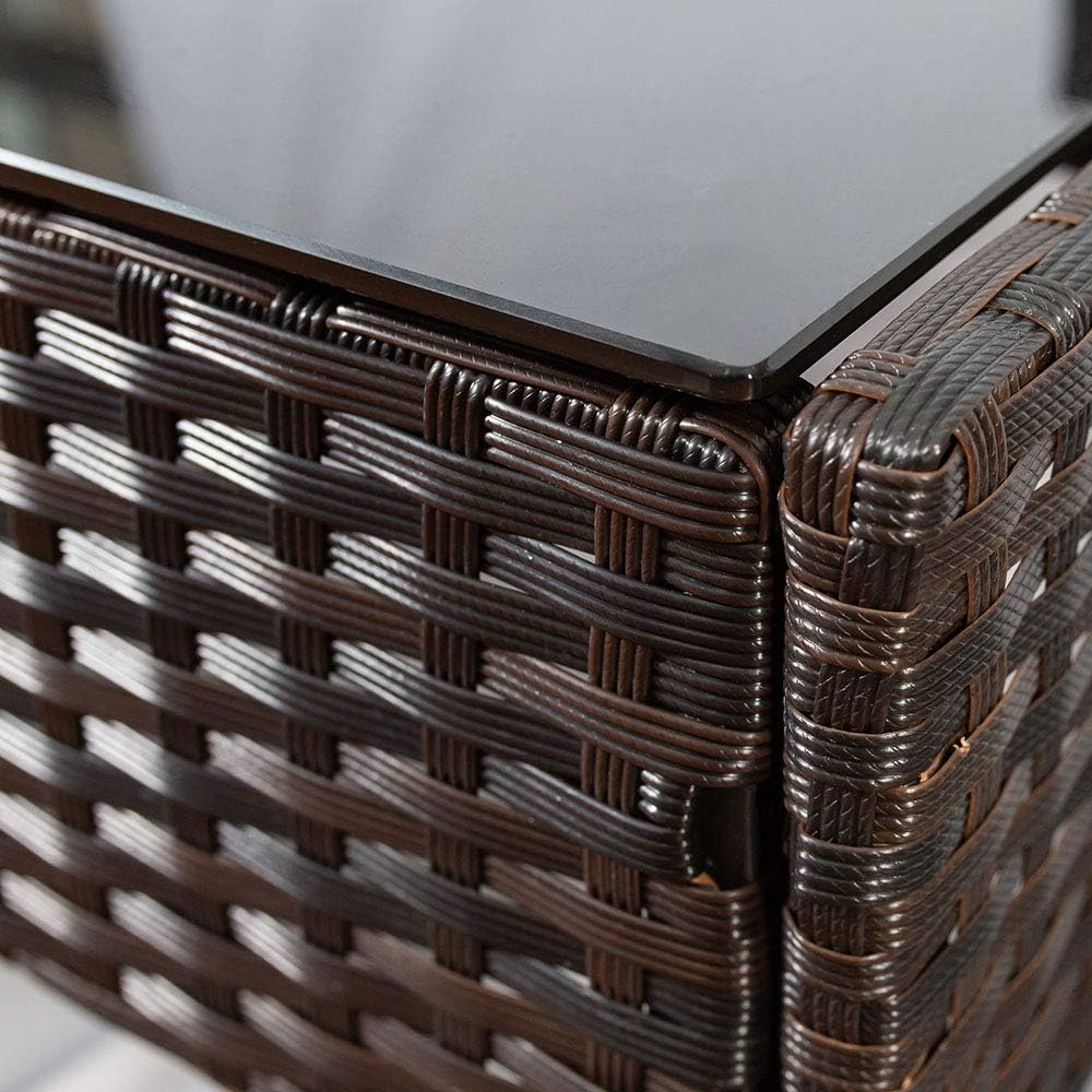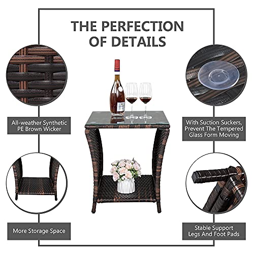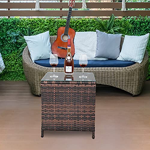 HomVent Patio Wicker Rattan Side Table, Outdoor Square Tempered Glass Top Rattan Coffee Table End Table Furniture with Storage for Patio Courtyard Balcony (Black)