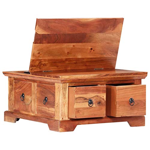 Coffee Table 26"x27.6"x13.8" Solid Acacia Wood,MidCentury Modern Acacia Wood Coffee Table with Storage and Antique Handles Accent Coffee Tables for Home & Kitchen