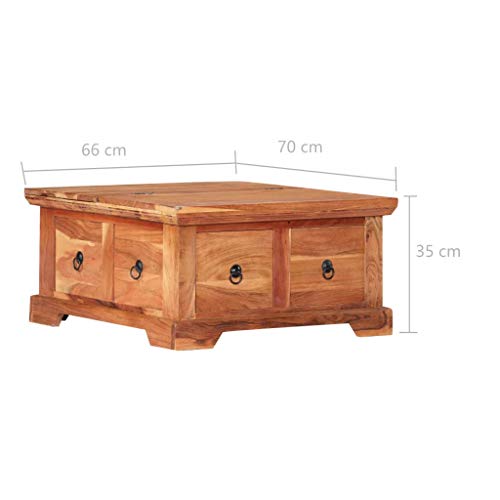 Coffee Table 27.5"x23.6"x16.5" Solid Acacia Wood,Vintage 4Drawer Wooden Coffee Table with Honey Finish for Home Living Room Accent Coffee Tables for Home & Kitchen