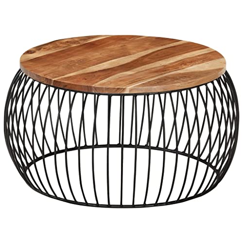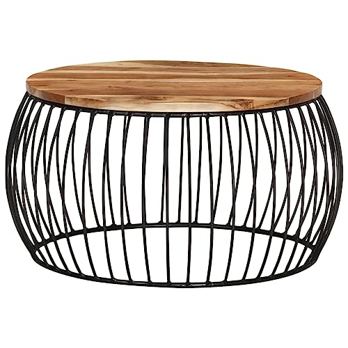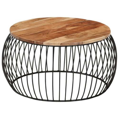 Coffee Table ?26.8" Solid Acacia Wood,Vintage Style Wooden Coffee Table, Solid Acacia Wood Side Table with Iron Frame for Living Room, Couch, Bedroom, Telephone Stand Accent Coffee Tables for Home & K