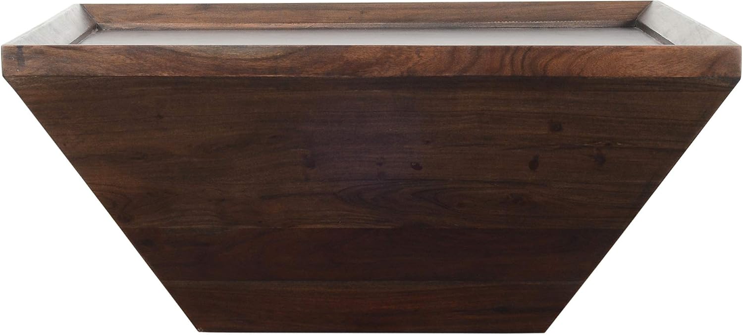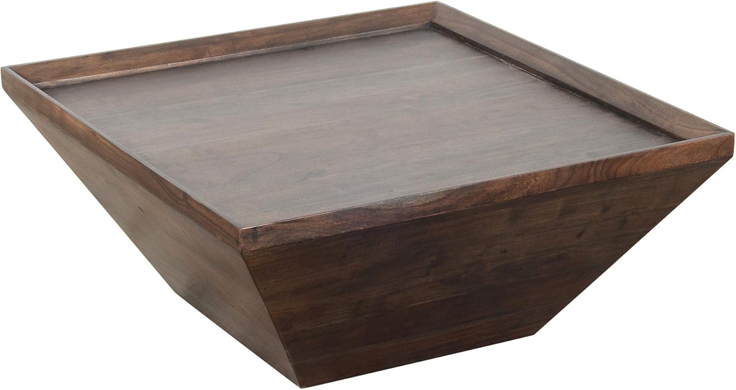 36 Inch Square Shape Acacia Wood Coffee Table with Trapezoid Base, Brown