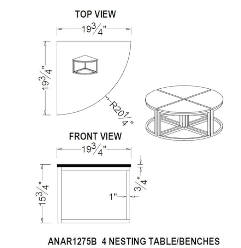 Alaterre Furniture Arcadia Acacia Set of 4 Round Wedge, Antiqued Mocha Wood Table