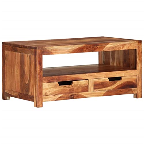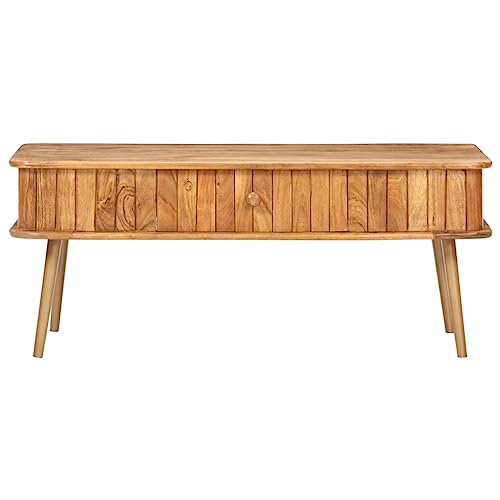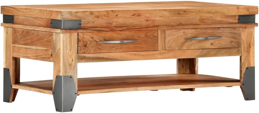 vidaXL Solid Acacia Wood Coffee Table - Natural Finish, with Drawers and Shelf, Polished and Lacquered - Perfect for Living Room, Durable Construction