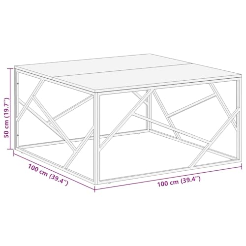 Coffee Table Silver Stainless Steel and Solid Wood Acacia,Durable Acacia Wood and Stainless Steel Square Coffee Table for Living Room Accent Coffee Tables for Home & Kitchen