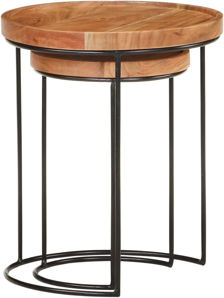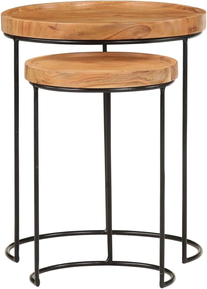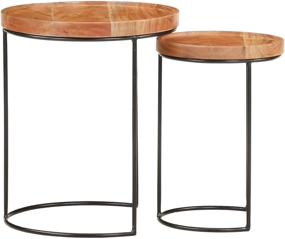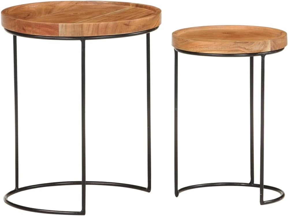 Coffee Tables、White Coffee table2 Piece Coffee Table Set Solid Acacia Wood and SteelSuitable for Living Room, Patio