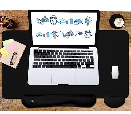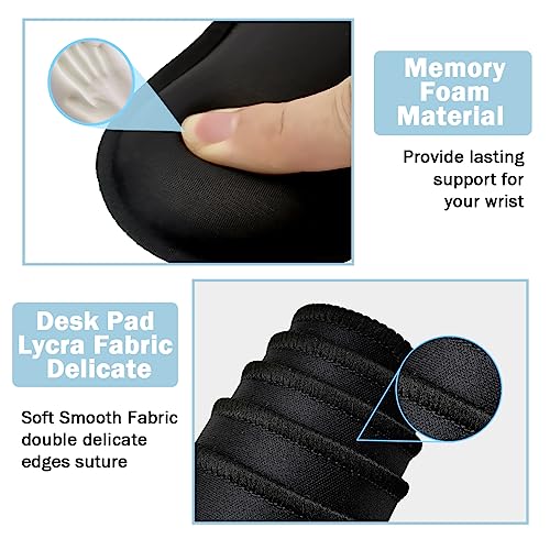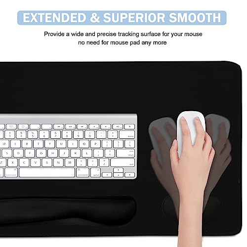 Large Keyboard Mouse Pad Set, Extended Mouse Pad+Keyboard Wrist Rest Support, Memory Foam Ergonomic Easy Typing, 4Pcs (35.4×15.13 in) Desk Pad Set for Home Office Study Game - Dark Blue