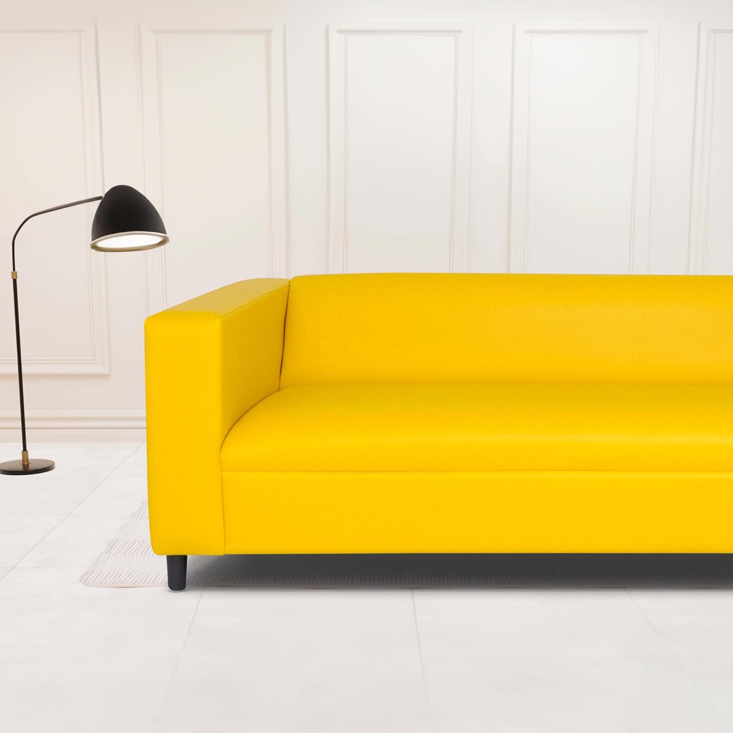 Yellow Faux Leather Sofa, Modern 3-Seater Sofas Couches for Living Room, Bedroom, Office, and Apartment with Solid Wood Frame
