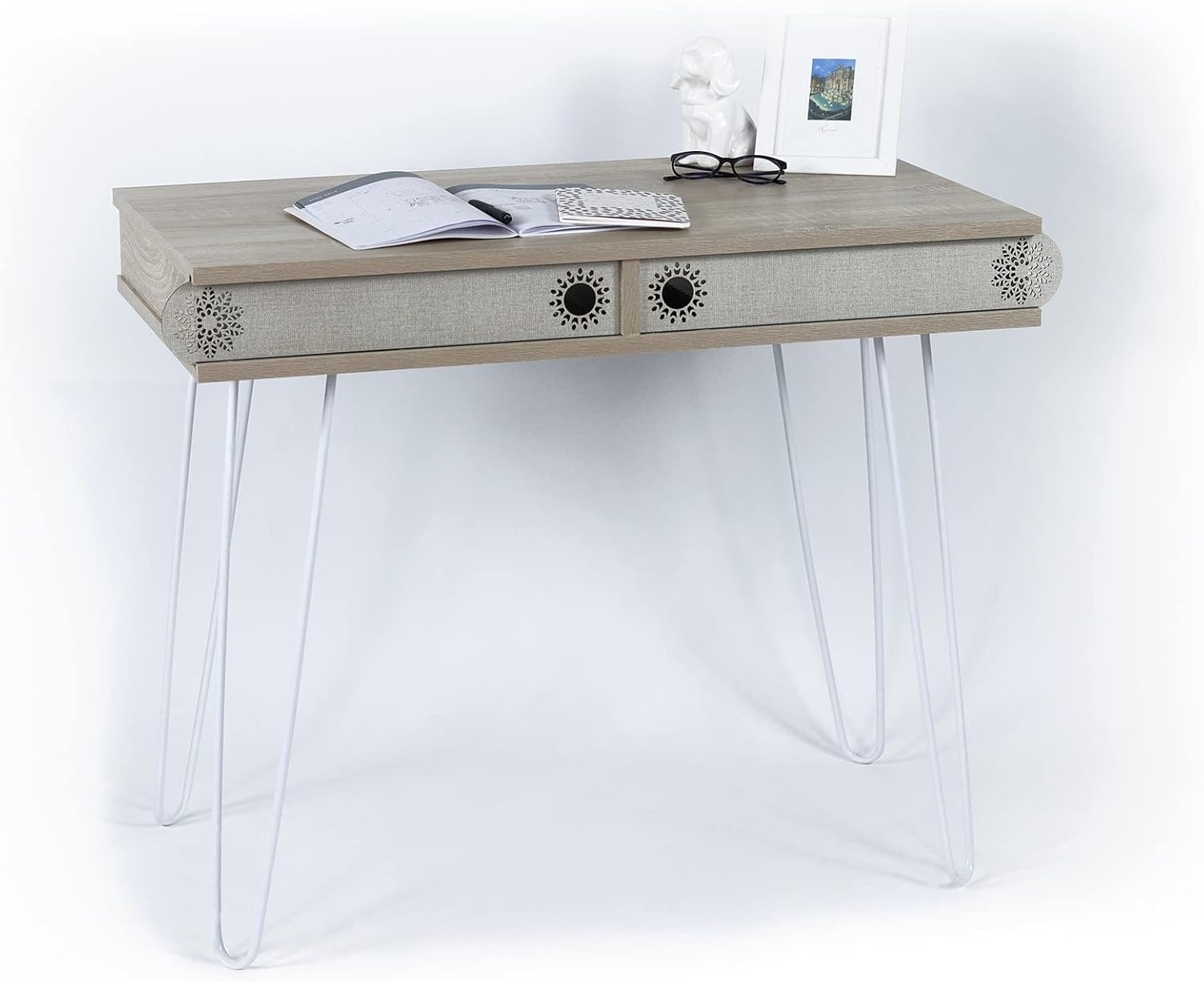 Overstock 2-Drawers Wood Study Desk Metal Legs Study Desk Oak