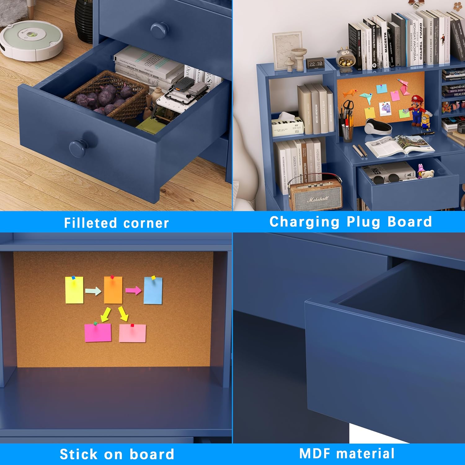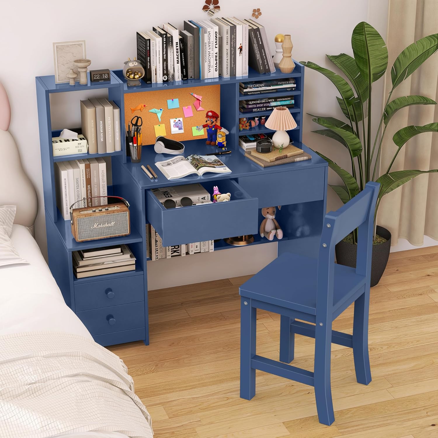 blue Desk and Chair Set for 5-12 Year Old, Computer Desk with Storage Shelf, Study Table with 4 Drawers-dxF-HA