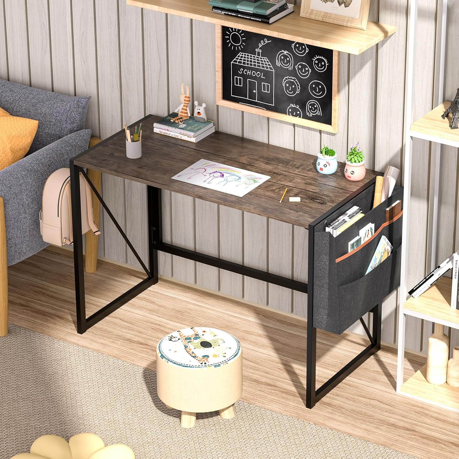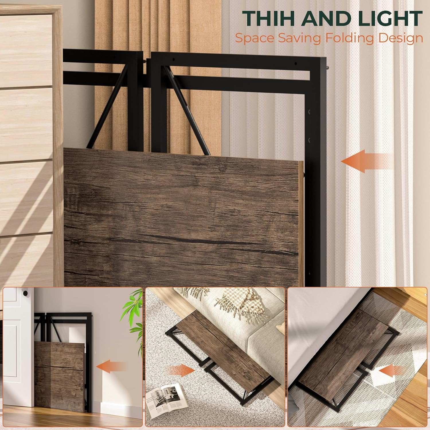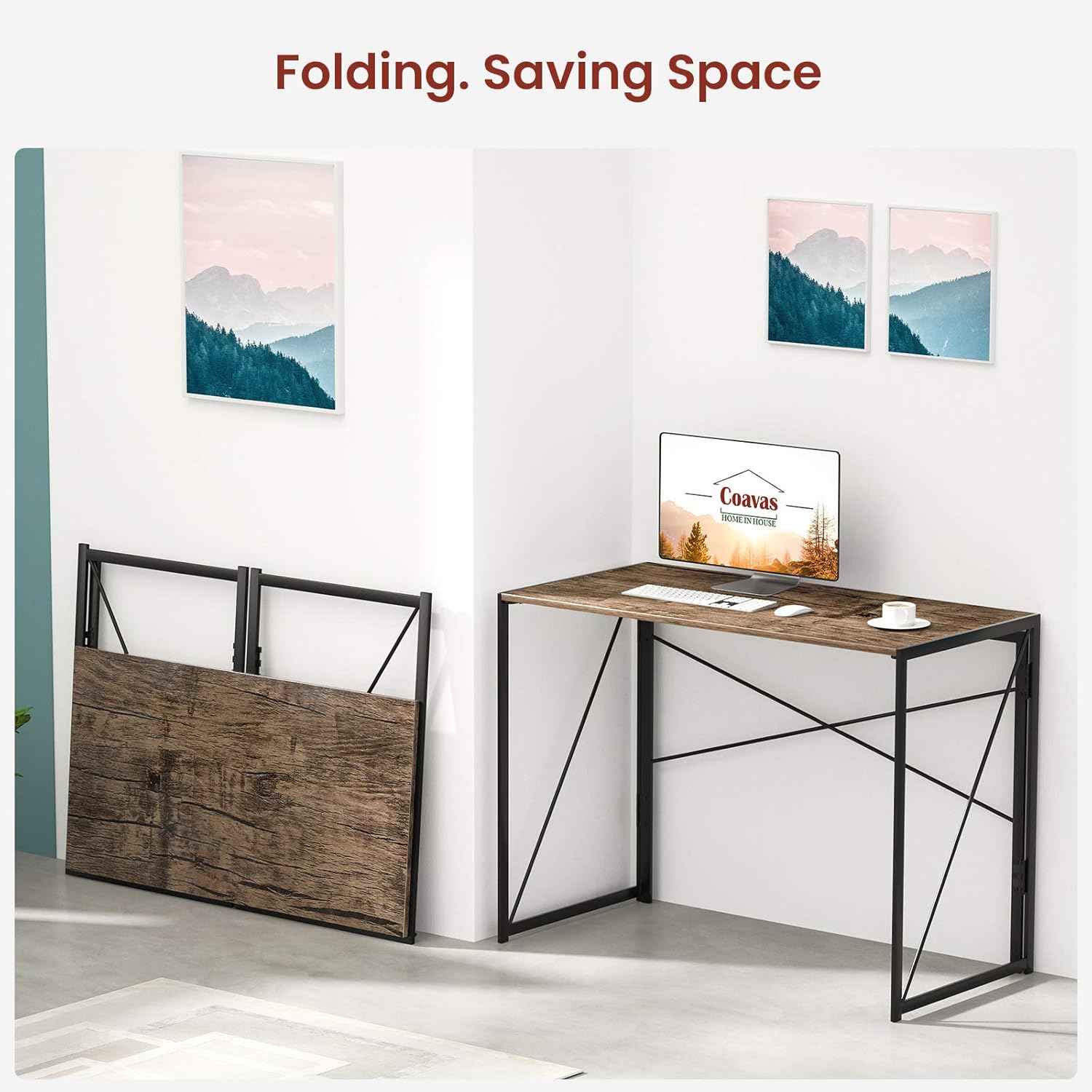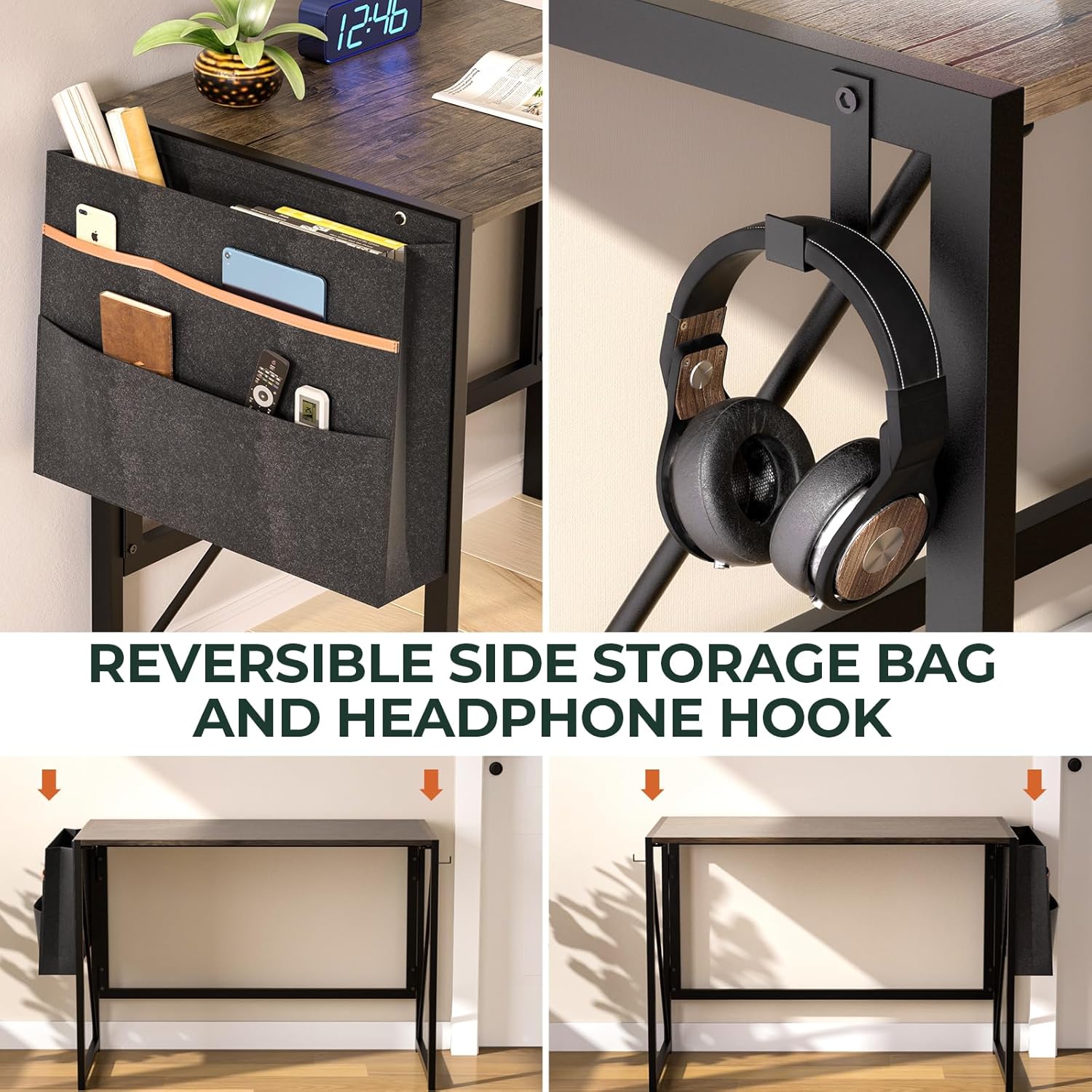 Coavas 39.4 inch Two Folding Desks Brown Set with Storage Bag and Headphone Hook