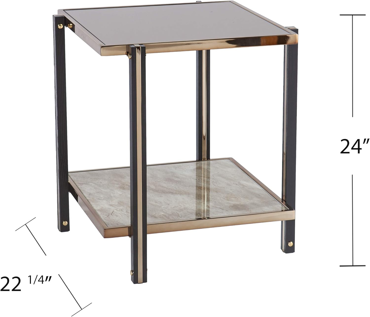 SEI Furniture Thornsett Mixed Material Mirrored Top End Table, Champagne