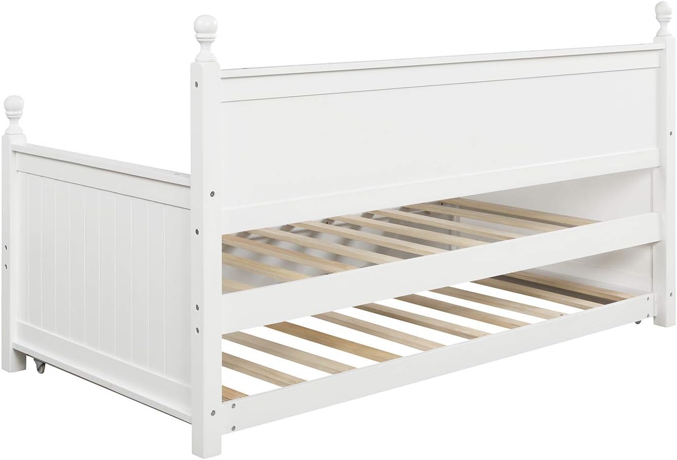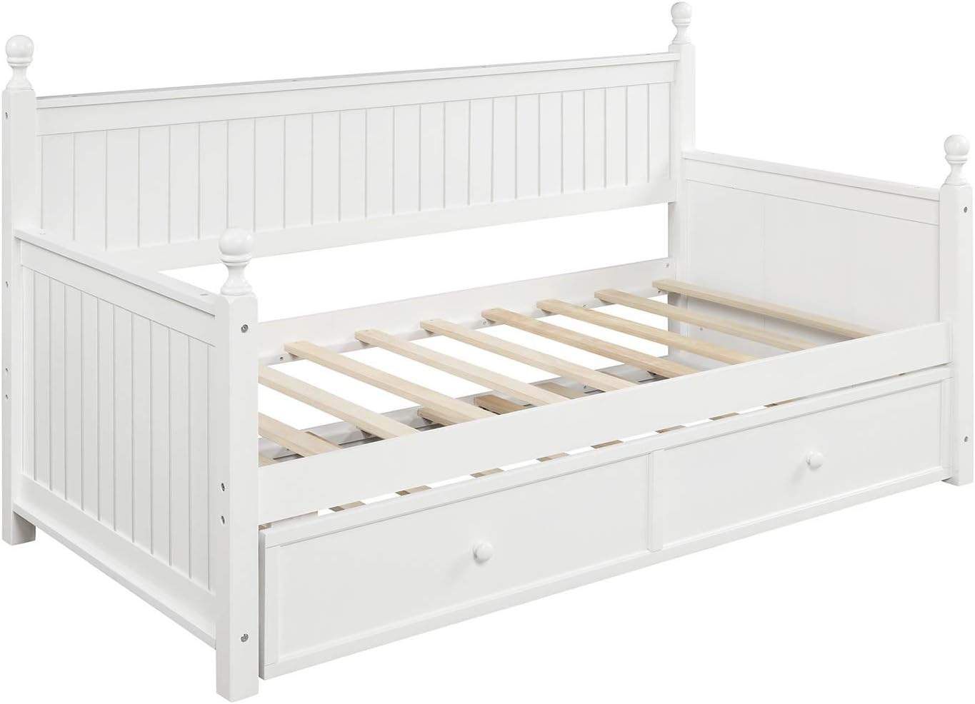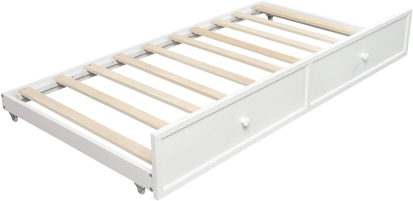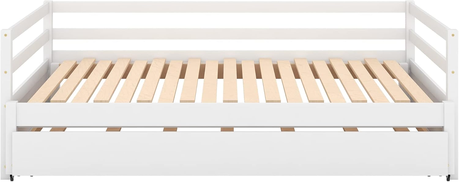 Harper & Bright Designs Twin Size Daybed with Trundle, Wood Twin Trundle Daybed Frame, Dual-use Daybed Sofa Bed for Living Room,Guest Room,Children Room, No Box Spring Needed,White