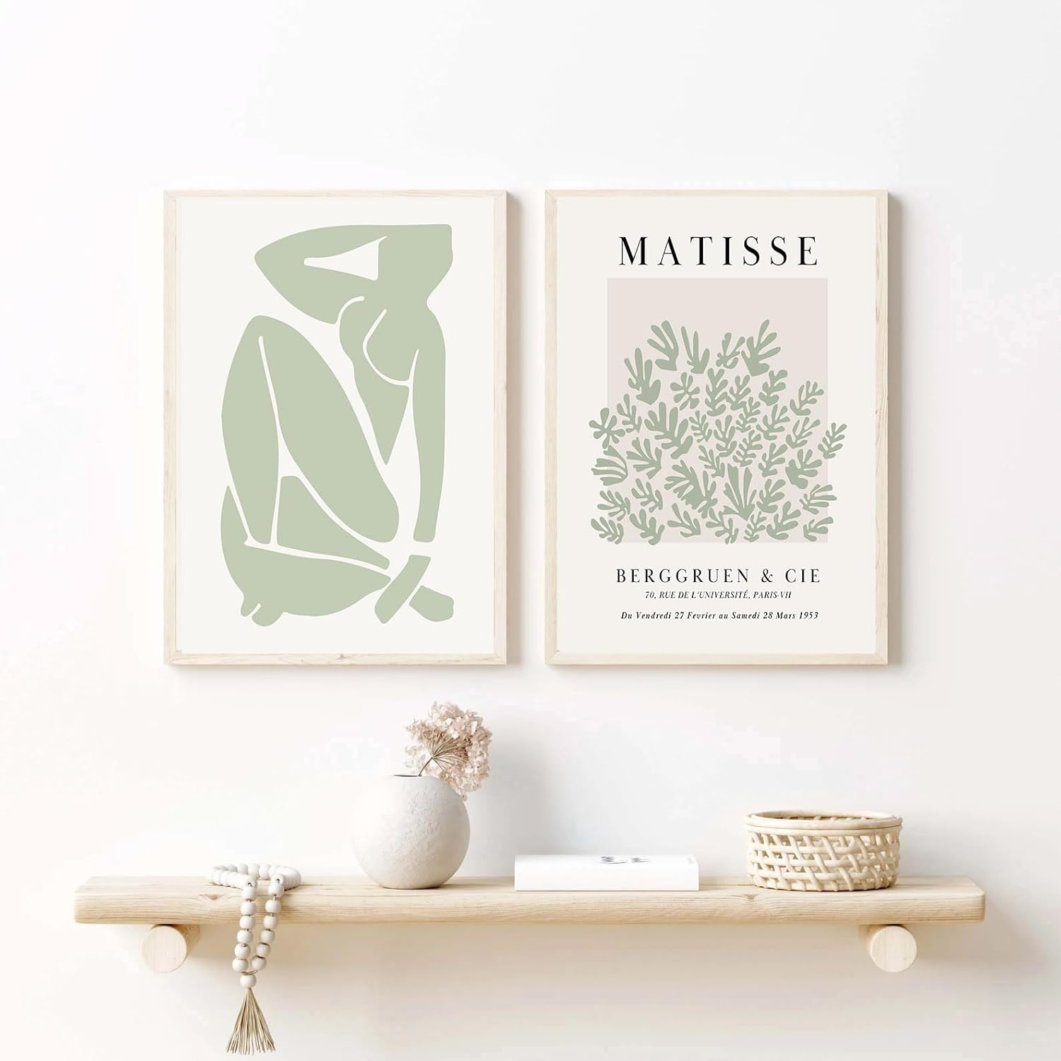 Matisse Sage Green and Beige Aesthietic Wall Art Decor - 8 Large (11"x14") - Ready to Frame Wall Art - Kitchen, Bathroom, Bedroom, Office, Dorm, Dining Room - Printer's Row & Co.