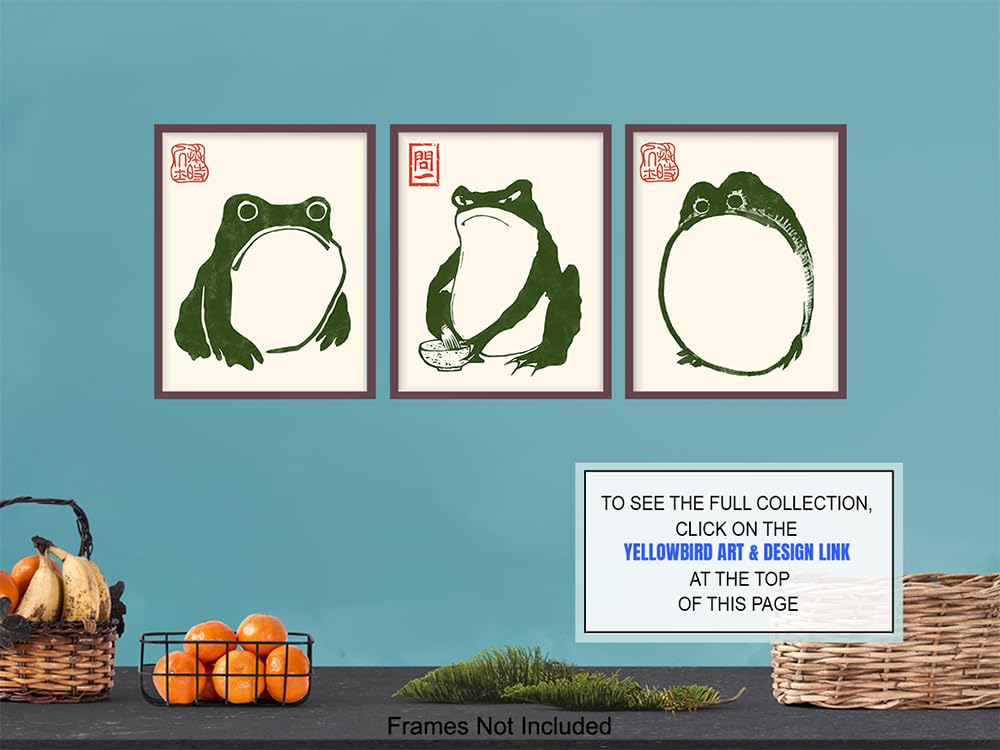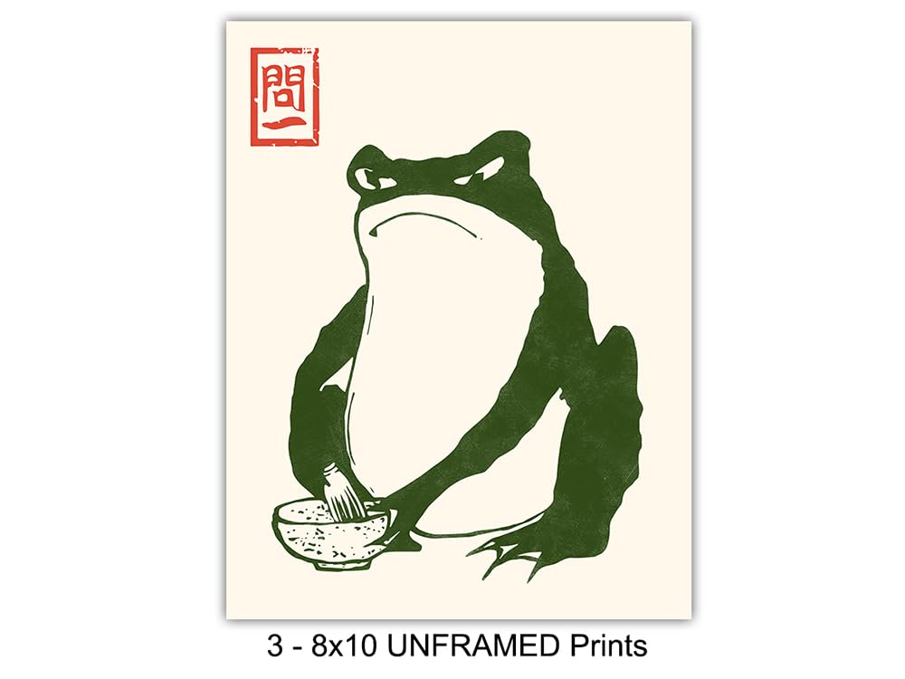 Japanese Frog Wall Art & Decor - Wabi Sabi Home Decor - Matsumoto Hoji Collage Gallery Wall Art Set - Japandi Home Decor Poster - Ukiyo-e Wall Art - Vintage Retro style Japan Wall Decor - Frog Decor