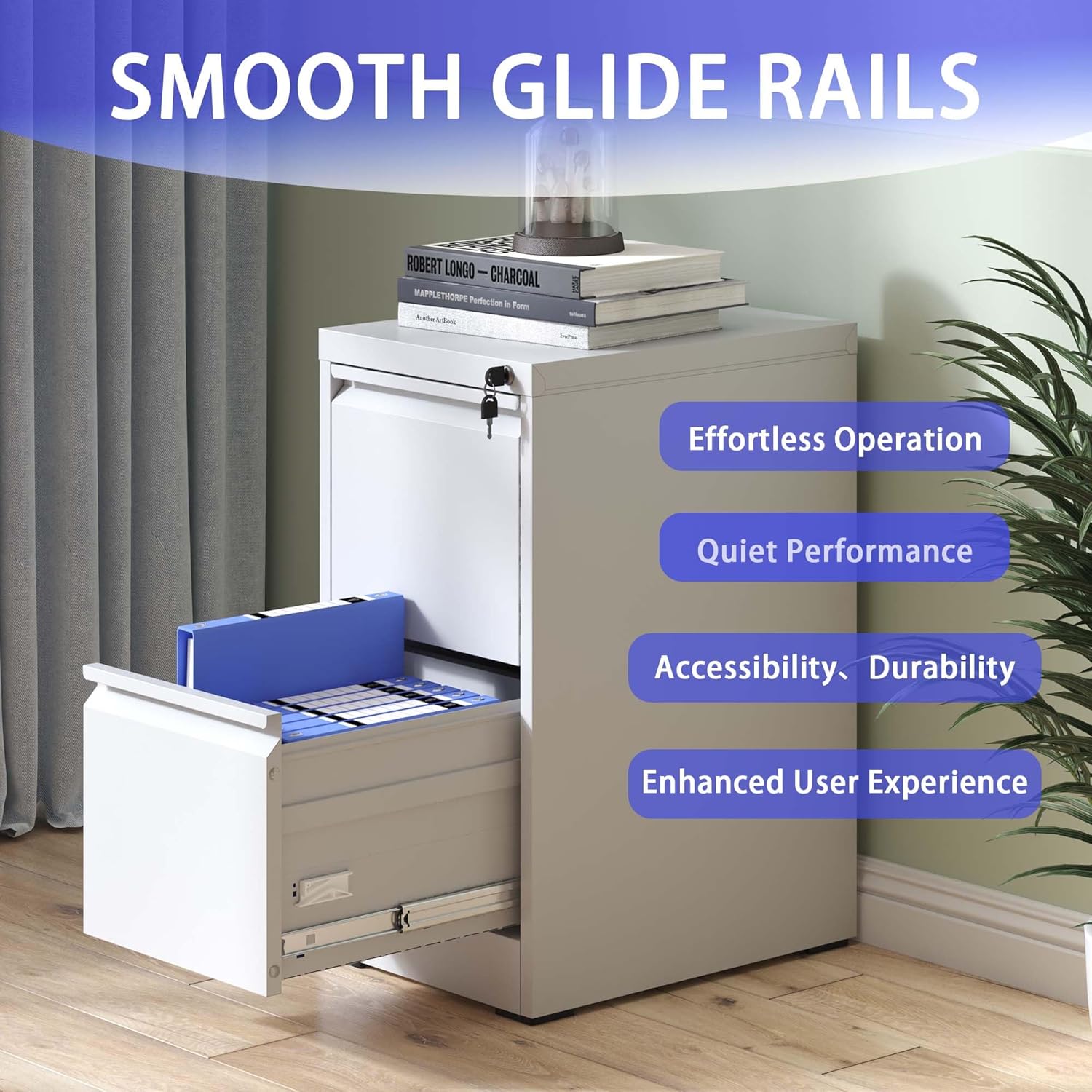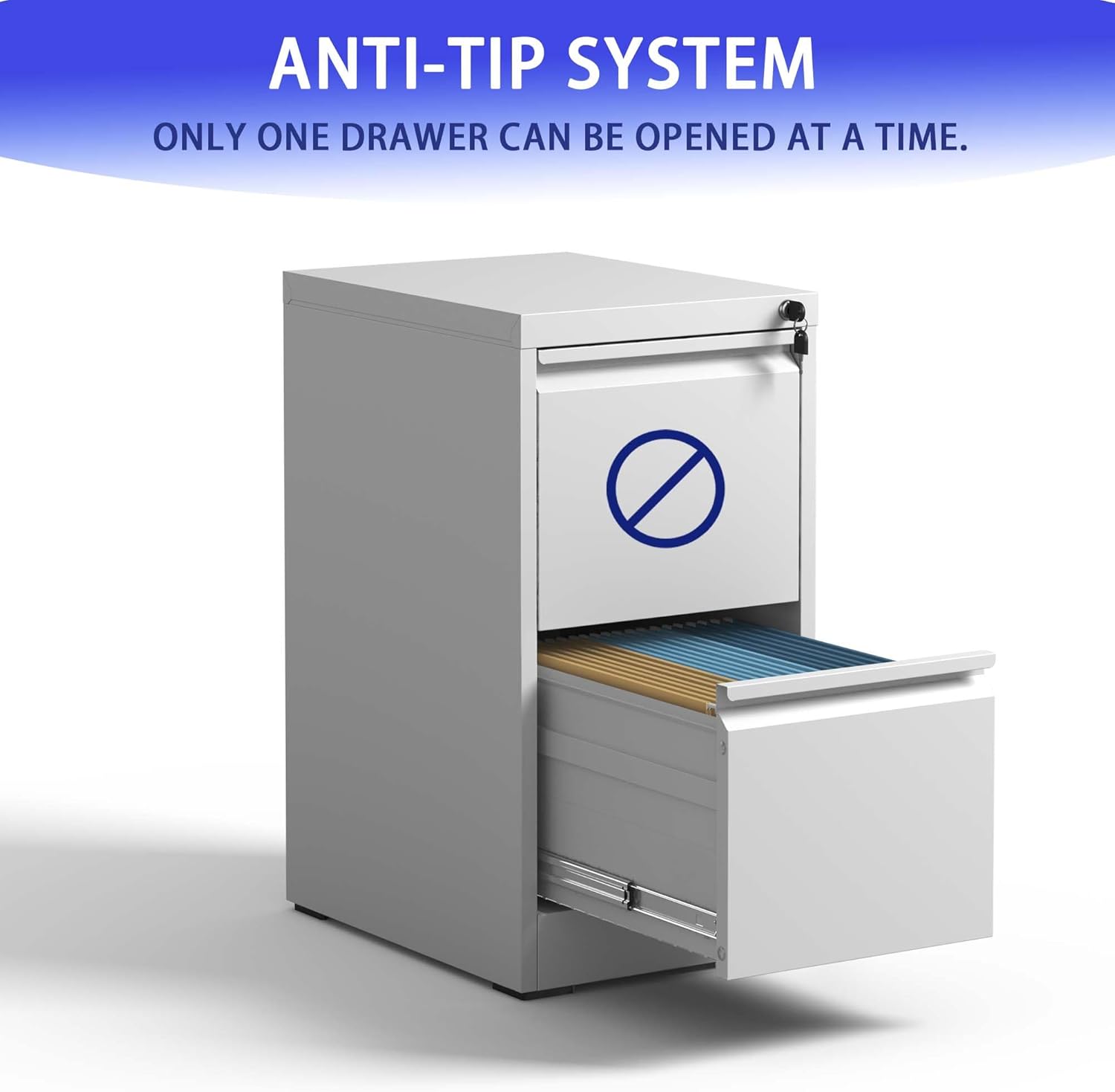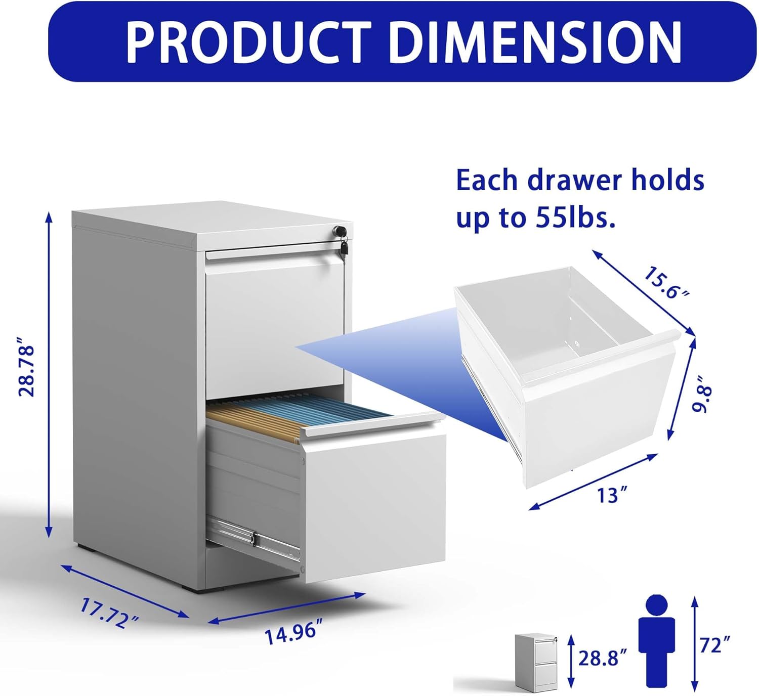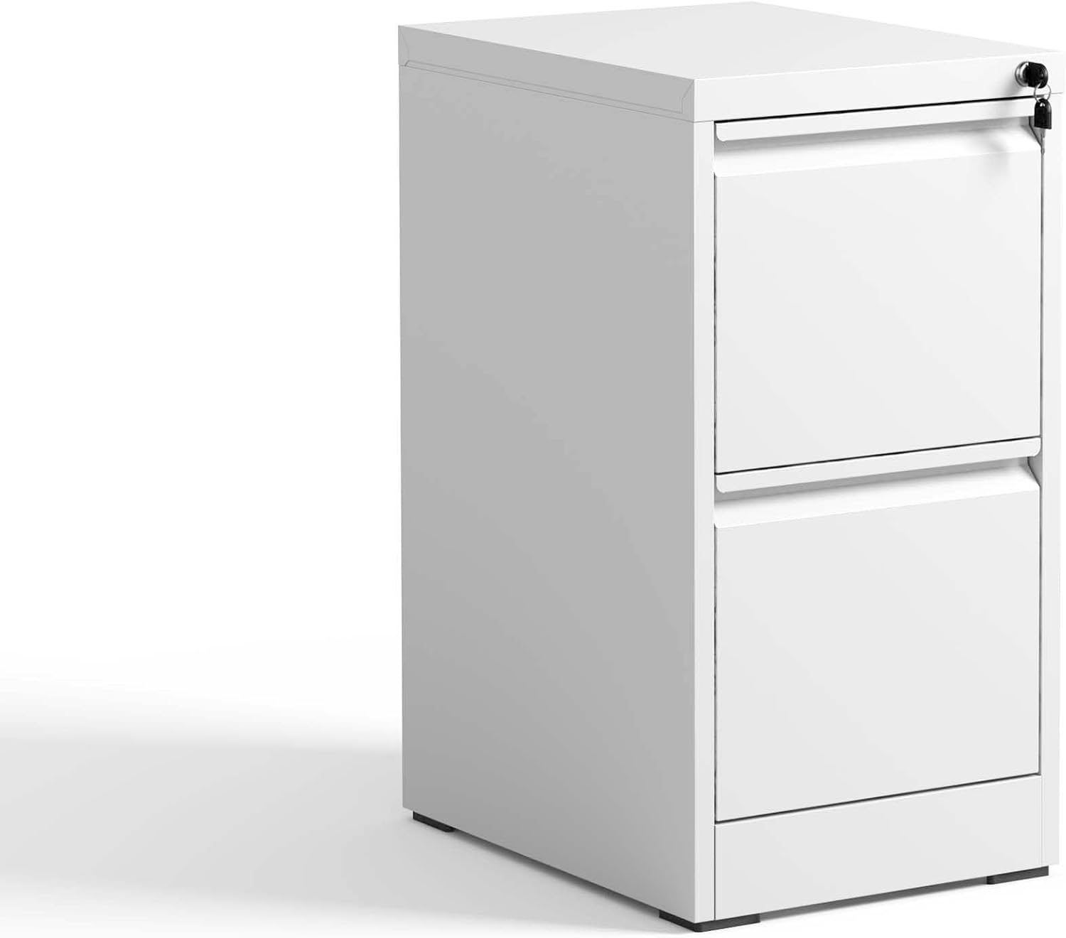 2 Drawer Metal Vertical File Cabinet with Lock Office Home Steel Vertical File Cabinet for A4 Legal/Letter Size (White)