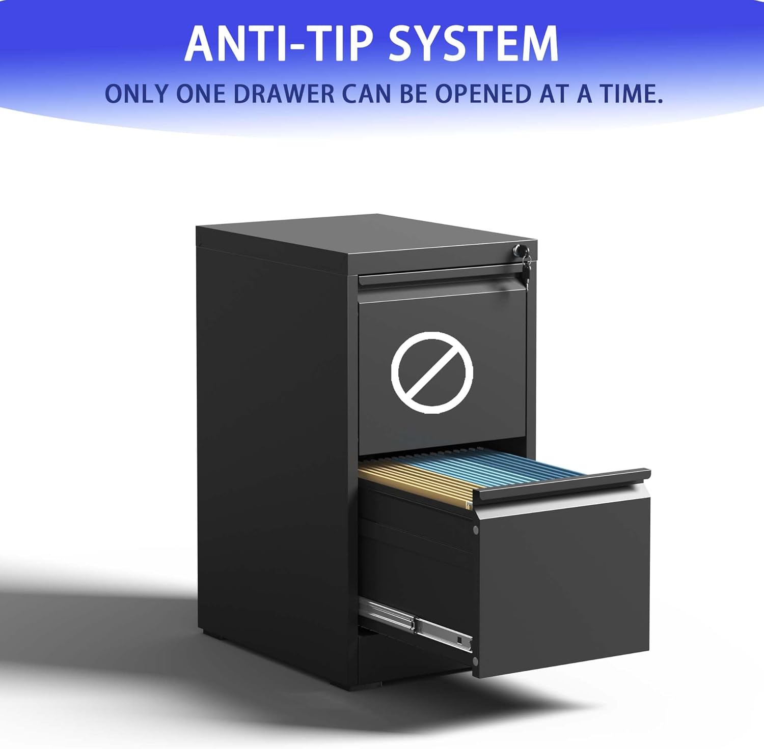 2 Drawer Metal Vertical File Cabinet with Lock Office Home Steel Vertical File Cabinet for A4 Legal/Letter Size (Black)
