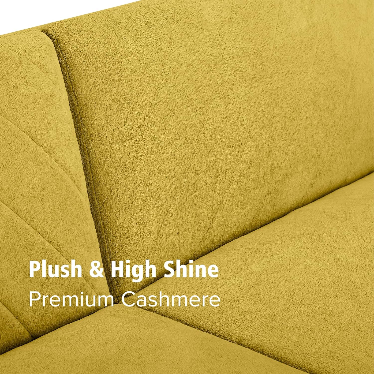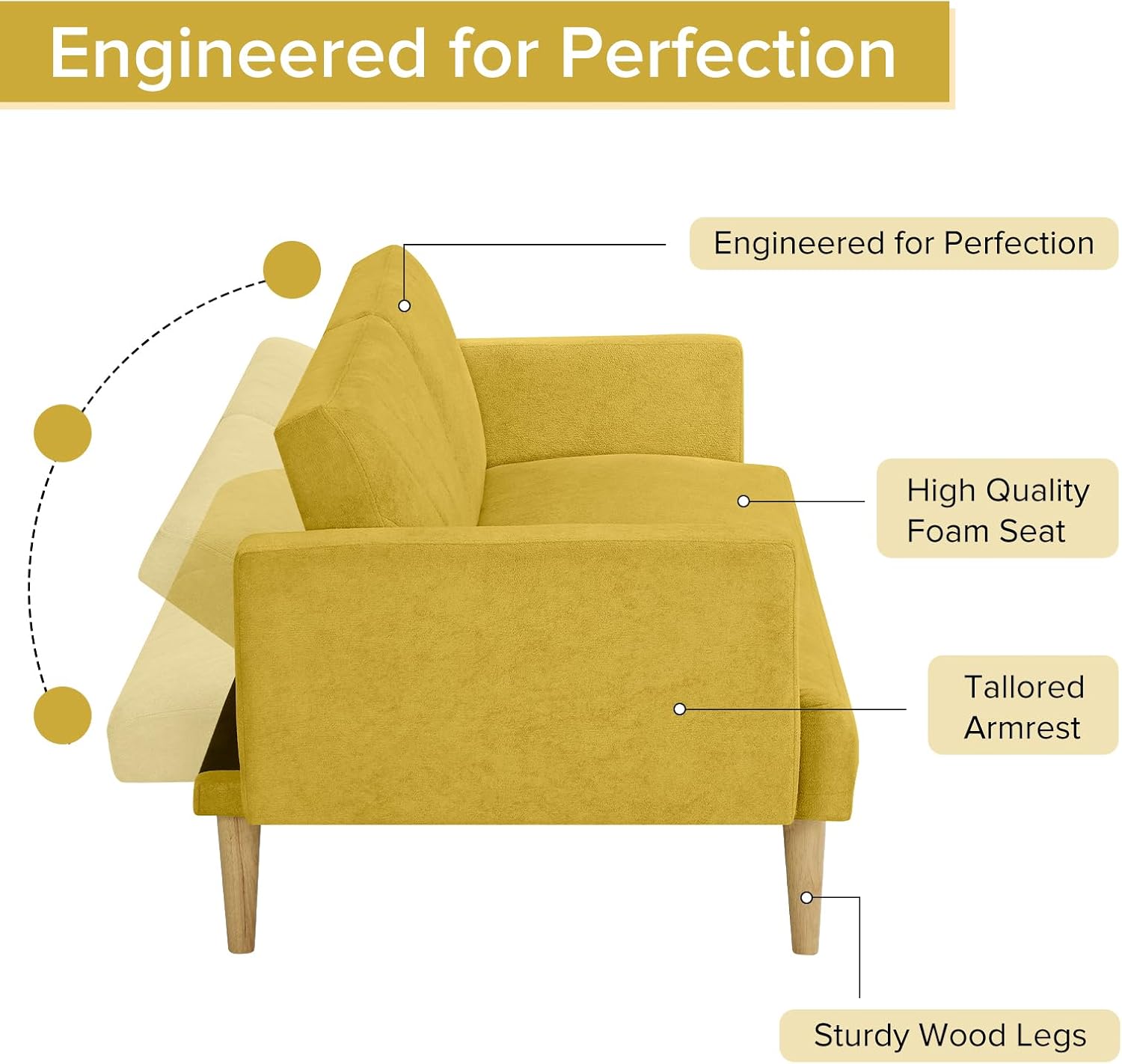 Convertible Futon Sofa Bed, Loveseat Sleeper Sofa Bed, Velvet Fabric Memory Foam Modern Futon Couch, Adjustable Reclining Sofa Bed Small Lounger Sofa for Living Room, Office, Apartment, Yellow