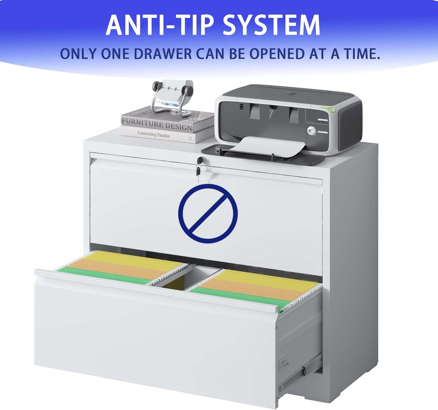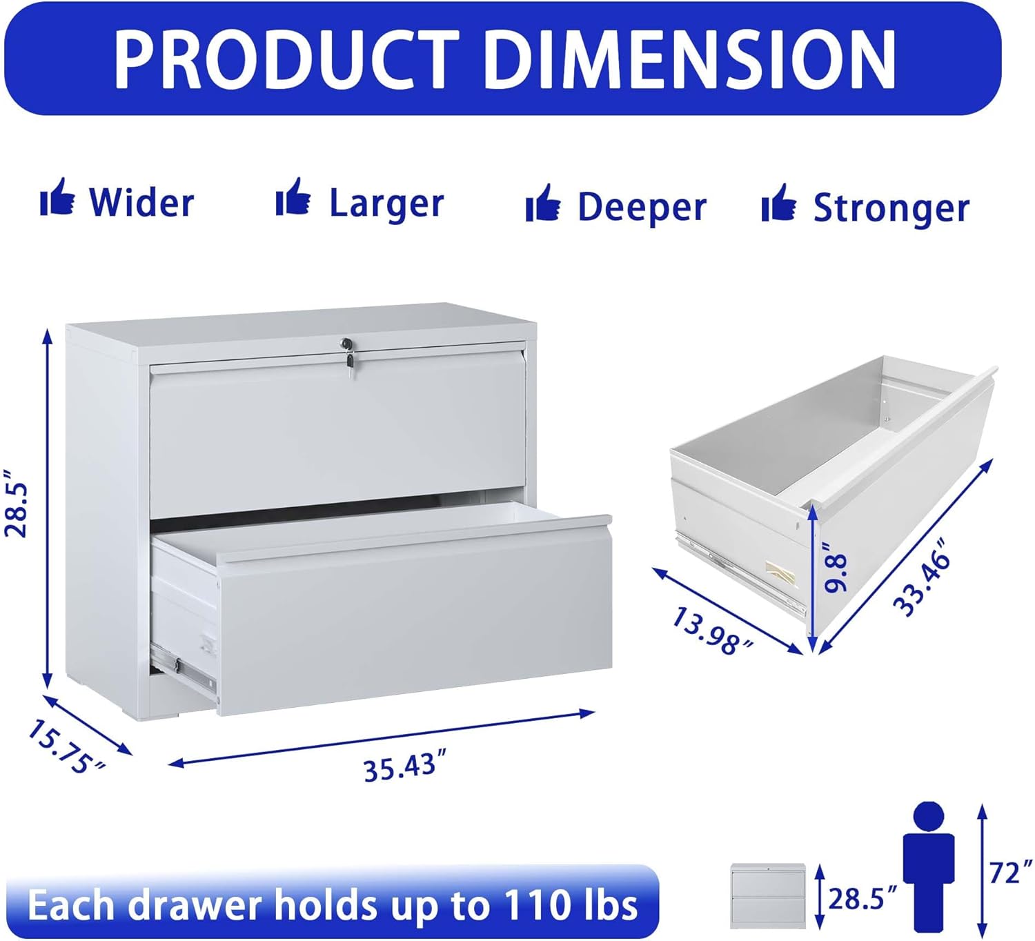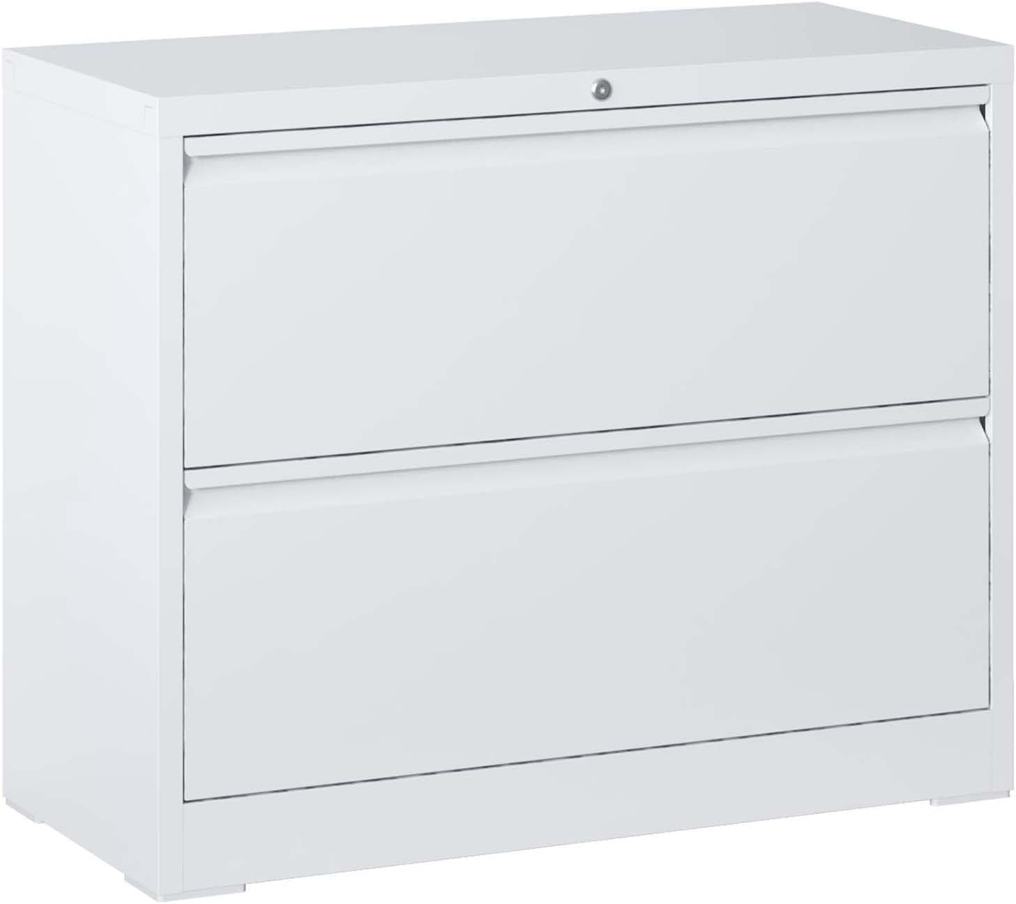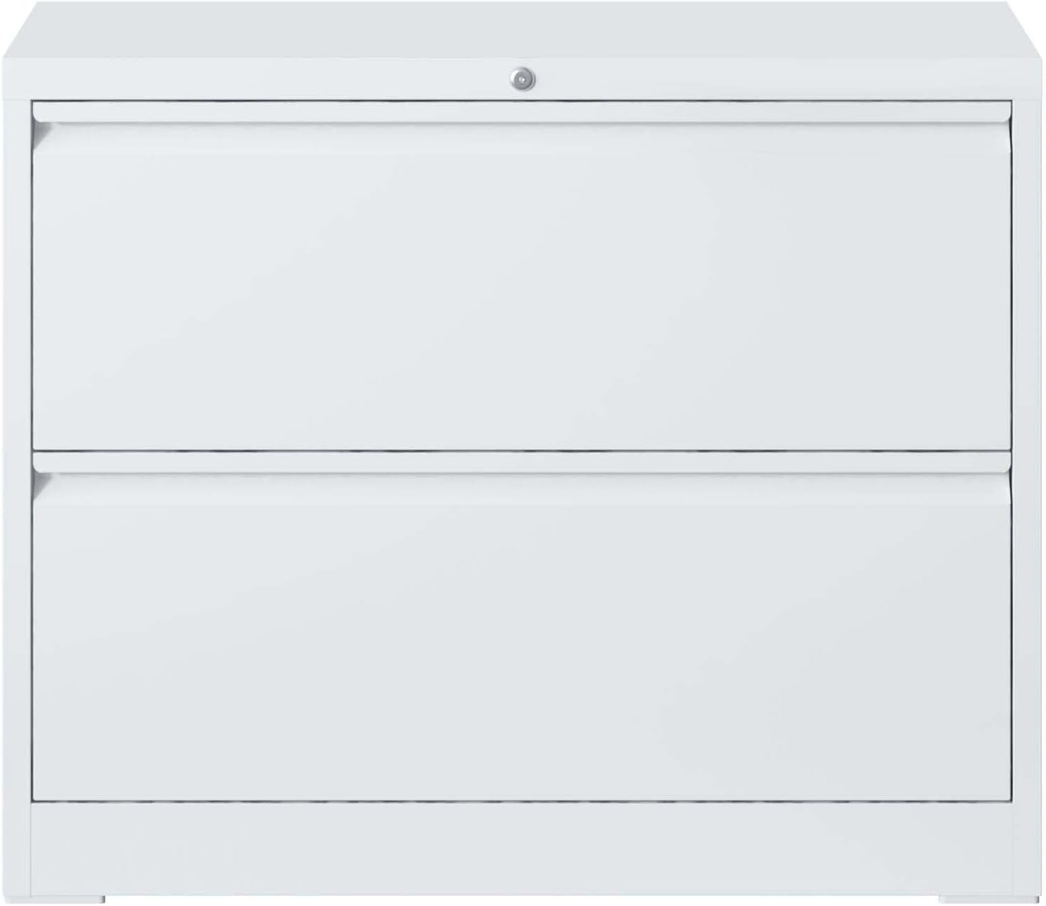 Lateral File Cabinet 2 Drawer, White Filing Cabinet with Lock, Lockable File Cabinet for Home Office, Locking Metal File Cabinet for Legal/Letter/A4/F4 Size