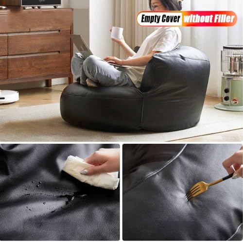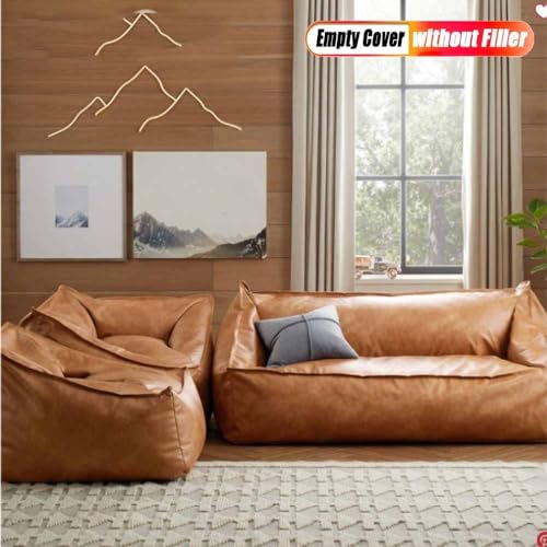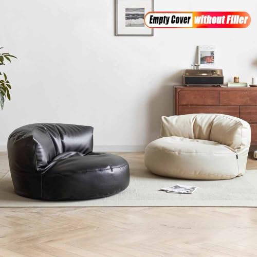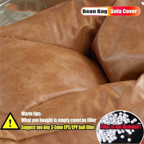 Bean Bag Chair PU Leather Bean Bag Sofa Cover without Filler Couch Pouf Sofa Case Adults Beanbag Chair Lazy Armchair Couch Floor Seating Living Room Furniture(Dust yellow)