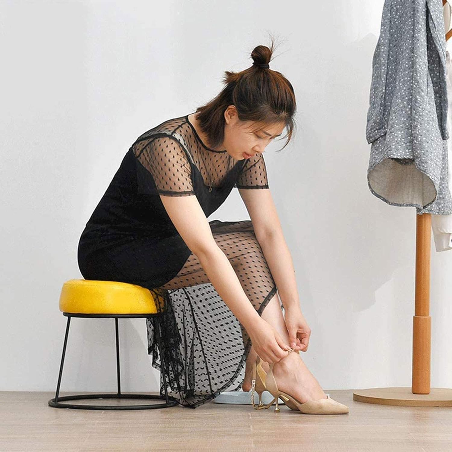 GeRRiT Footstool Foot Stool Dressing Table Footrest Sofa Stool,Home Fashion Wrought Iron Leather Stool Living Room Change Shoes Stool Dining Stool Bedroom Makeup Stool 28.5×36cm Seat Stor, Yellow