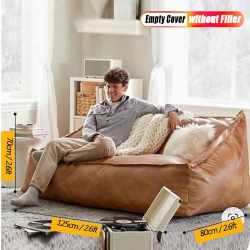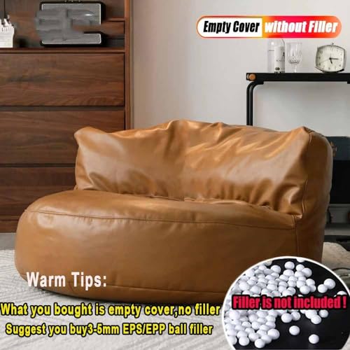 Bean Bag Chair Bean Bag Sofa Cover (No Filler) 2-seat PU Leather Bean Bag Cover Without Filler Beanbag Couch Sofa Bed Lounger No Filling (Color : Dust Yellow, Size : 2-seat-Empty Cover)