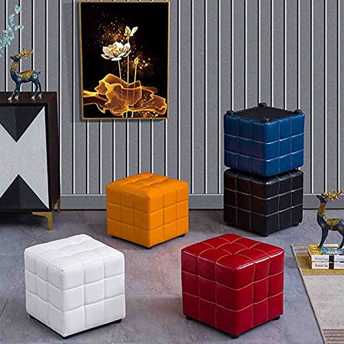 Ottomans Stools Square Seat Chair Footstool Oil Wax Leather, Footstools for Living Room/Couch/Coffee Table/Fitting Room/Shoe Changing/Ktv Sofa/Yellow/36 * 36Cm