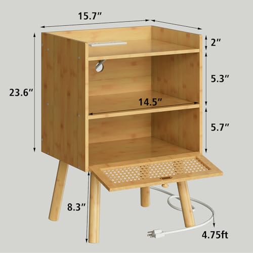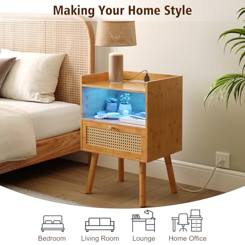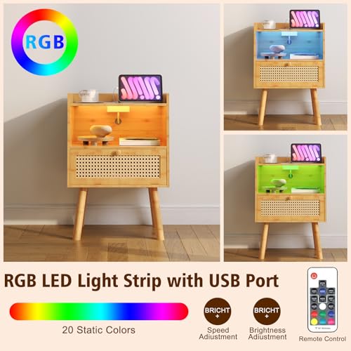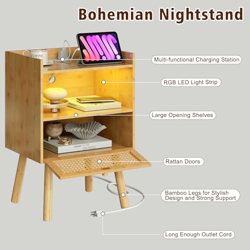 Night Stand Set of 2, Nightstand with Charging Station, LED Nightstands with USB Ports and Outlets, End Side Table with Acrylic Decorative Door, Bedside Tables for Bedroom Living Room, White