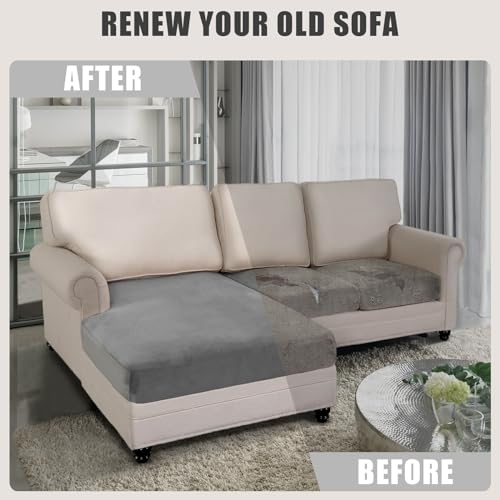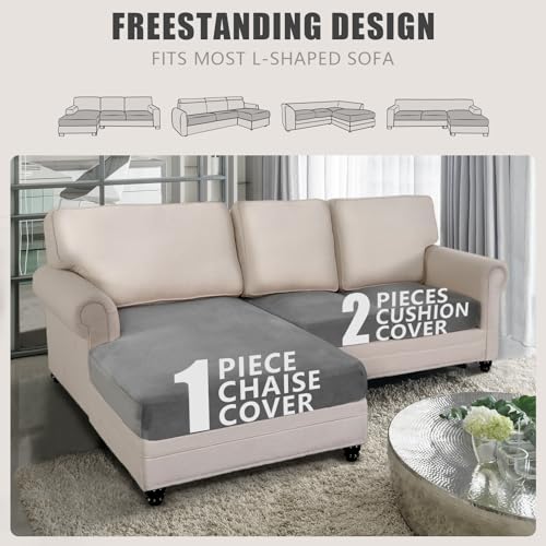 Velvet Sectional Couch Cover 1 Piece Chaise Cushion Cover L Shape Separated Cushion Sofa Chaise Lounge Cover for Both Left/Right Sectional Couch (Chaise Cover, Light brown)