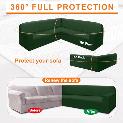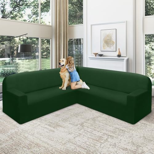 L Shaped Couch Covers for Sectional Sofa Soft Fleece Corner Sofa Covers Washable Stretch Sofa Slipcover U Shape Furniture Protector for Living Room with Elastic Bottom (Light Brown, X-Large)