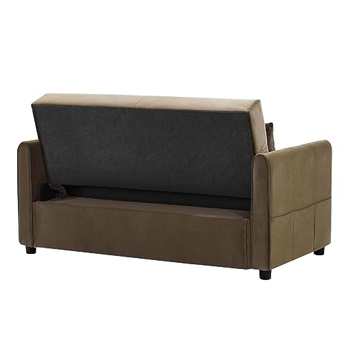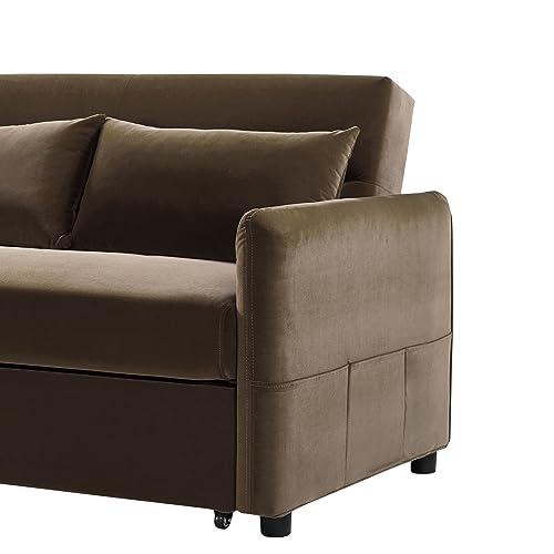 Double Seat Sofa Bed Multifunctional Convertible Sofa Chair with Pull-Out Bed, 2 Lumbar Pillows and Adjustable Backrest for Living Rooms Apartments, 57.1" W x 33.9" D x 33.1" H Light Brown
