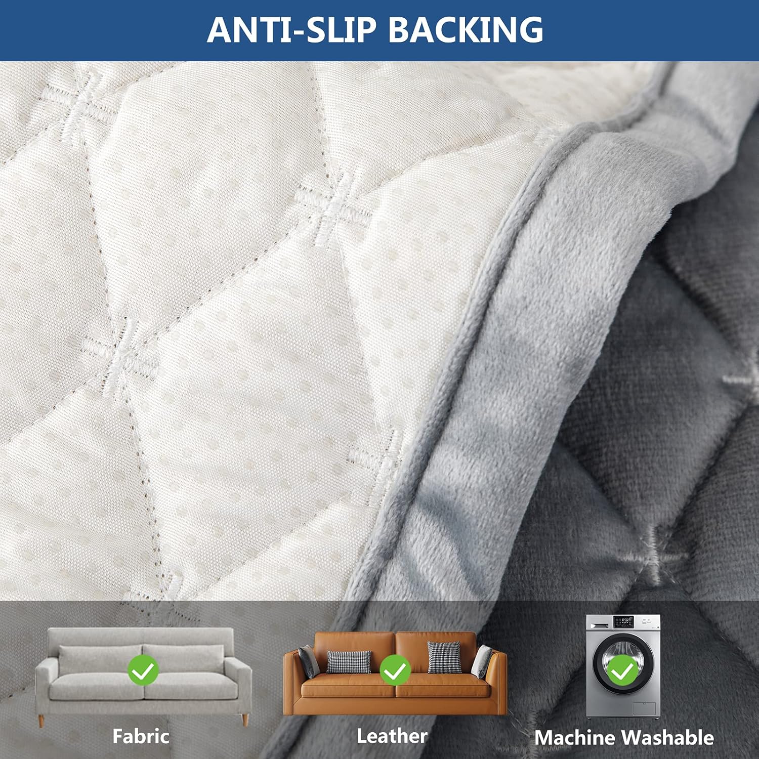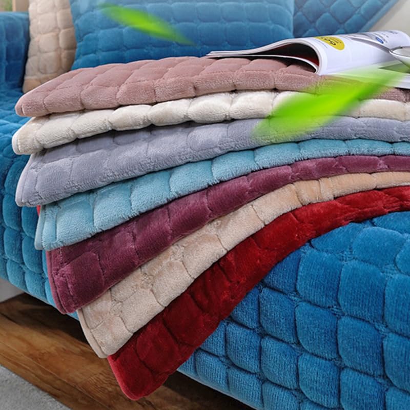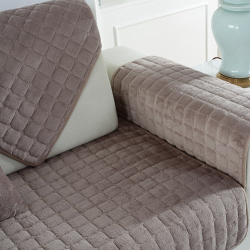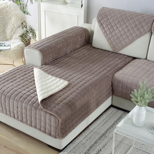 Velvet Couch Cover,Anti-Slip Sectional Couch Covers,Reversible Quilted Corner Furniture Cover,Sofa Slipcover for Dogs Cats Pet,Washable Recliner Sofa Cover,Only 1 Piece/Not All Set,Light Brown-35"x63"