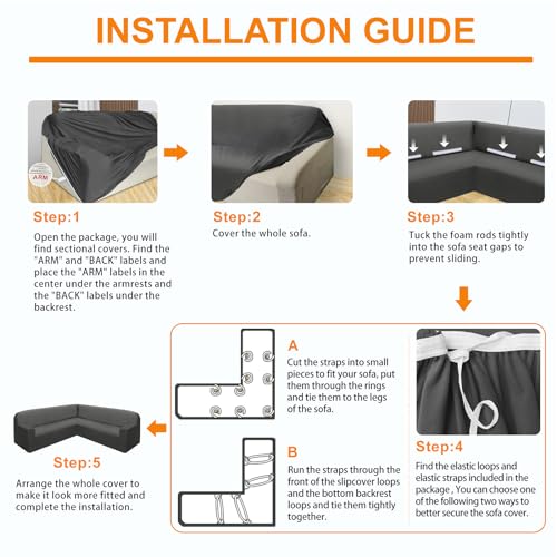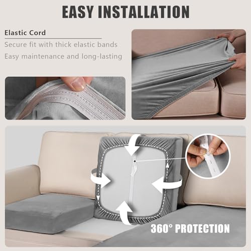 Eismodra Couch Cover,Sectional Couch Covers,Sofa Covers for 3 Cushion Couch,Anti-Slip Sofa Slipcovers for Dogs Cats Kids Loveseat Recliner L Shaped Armrest Backrest,Light Gray 43''x70''(Only 1 Piece)