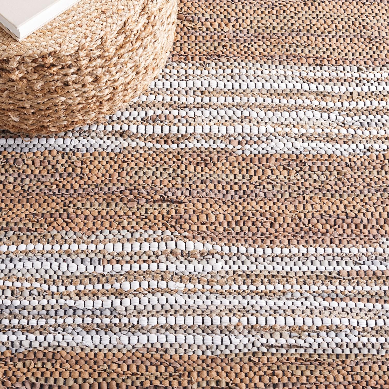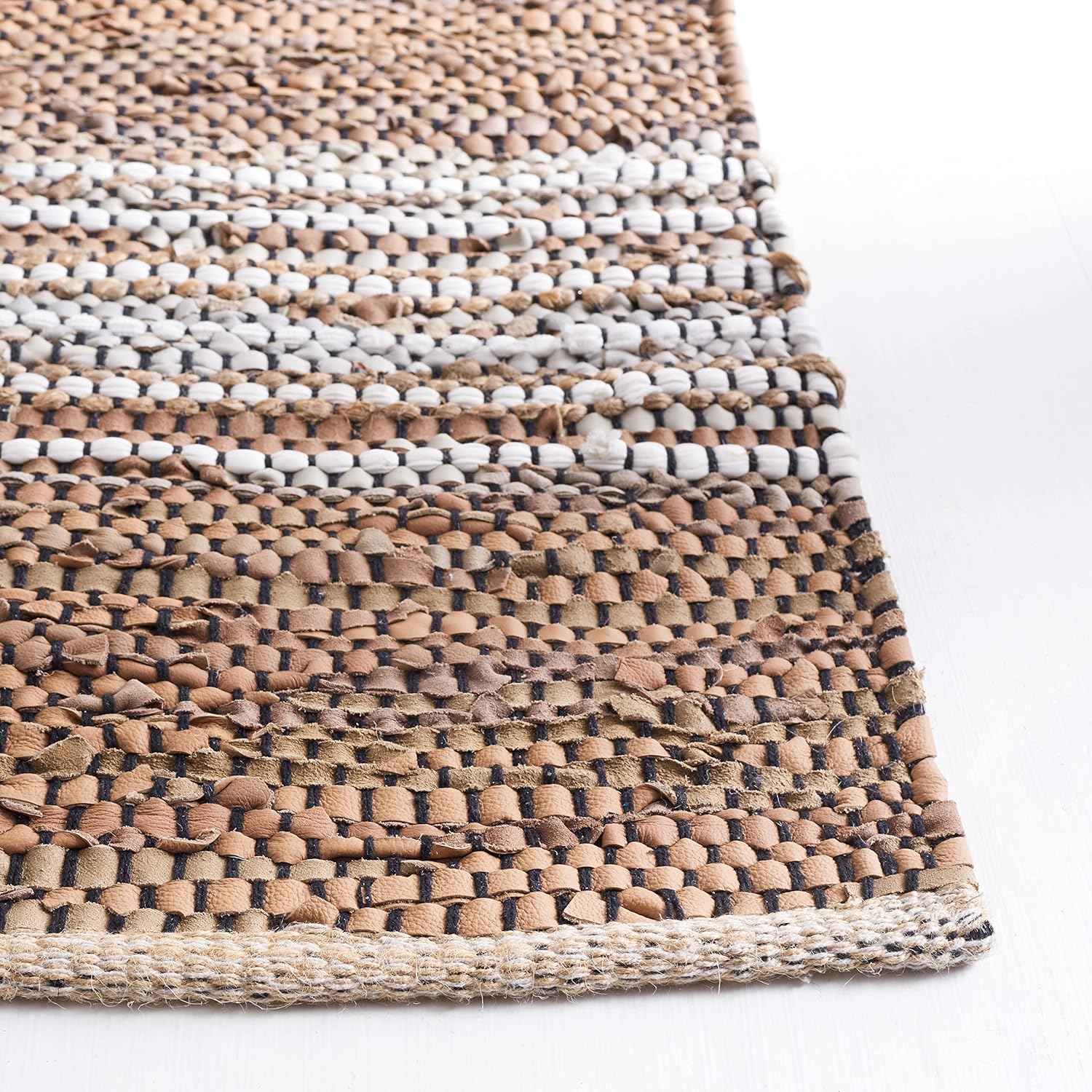 SAFAVIEH Vintage Leather Collection Area Rug - 8' x 10', Light Brown & Ivory, Handmade Stripe, Ideal for High Traffic Areas in Living Room, Bedroom (VTL204T)