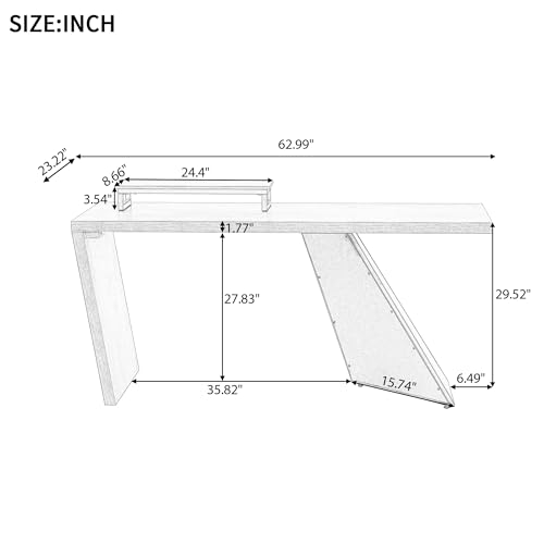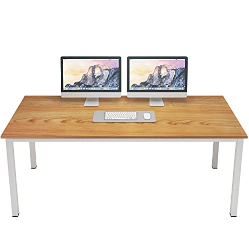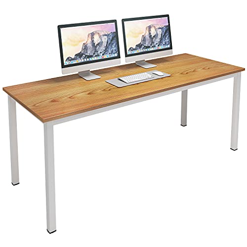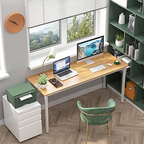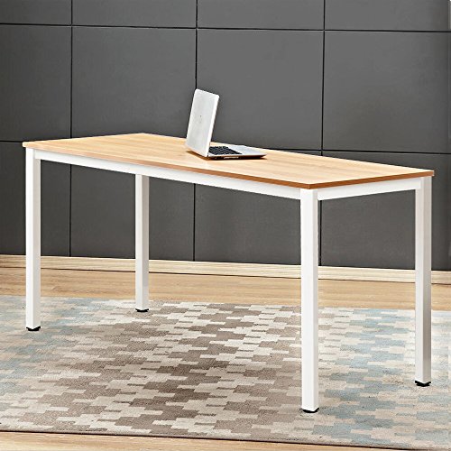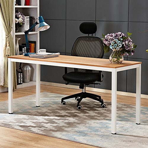 SogesGame Computer Desk, 63 inches Office Desk Computer Table Study Writing Desk Workstation for Home Office, Dining Table Teak White